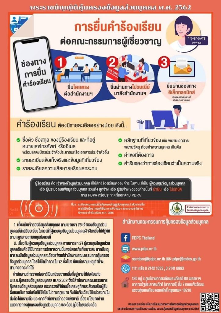 เพื่อให้เป็นไปตามเจตนารมณ์ของ ผบ.ตร.ดังกล่าว และเป็นไปตามบหบัญญัติแห่งกฎหมาย พ.ร.บ.คุ้มครองข้อมูลส่วนบุคคล พ.ศ.๒๕๖๒ ซึ่งสอดคล้องกับประกาศ ตร. เรื่อง นโยบายด้านแนวทางการคุ้มครองข้อมูลส่วนบุคคล ดังกล่าว สทส. จึงขอให้ผู้ควบคุมข้อมูลส่วนบุคคลของทุกหน่วยงานประชาสัมพันธ์ภาพนำเสนอข้อมูล เรื่อง การยื่นคำร้องเรียนต่อคณะกรรมการผู้เชี่ยวชาญ เกี่ยวกับความผิดตาม พ.ร.บ.คุ้มครองข้อมูลส่วนบุคคล พ.ศ.๒๕๖๒ ประชาสัมพันธ์ให้ข้าราชการตำรวจและประชาชนทั่วไป ได้รับทราบและทำความเข้าใจโดยทั่วกัน