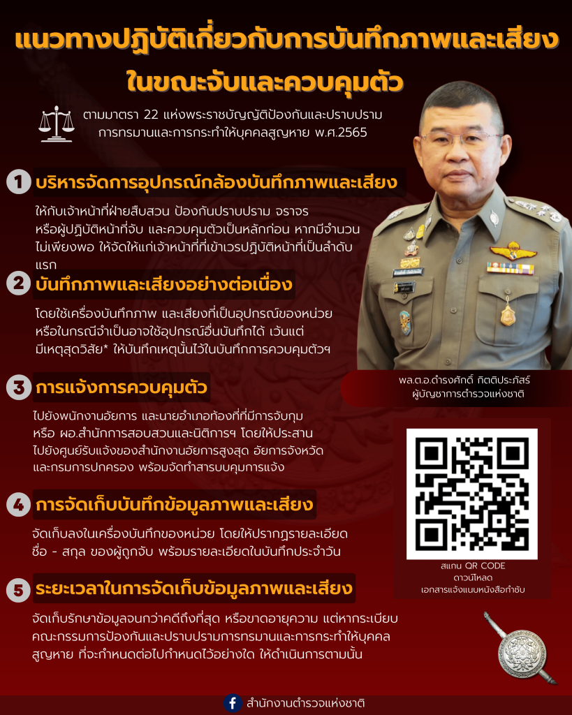 แนวทางการปฏิบัติเกี่ยวกับการบันทึกภาพและเสียงในขณะจับและควบคุมตัวตามมาตรา 22 แห่ง พ.ร.บ.ป้องกันและปราบปรามการทรมานและการกระทำให้บุคคลสูญหาย พ.ศ.2565