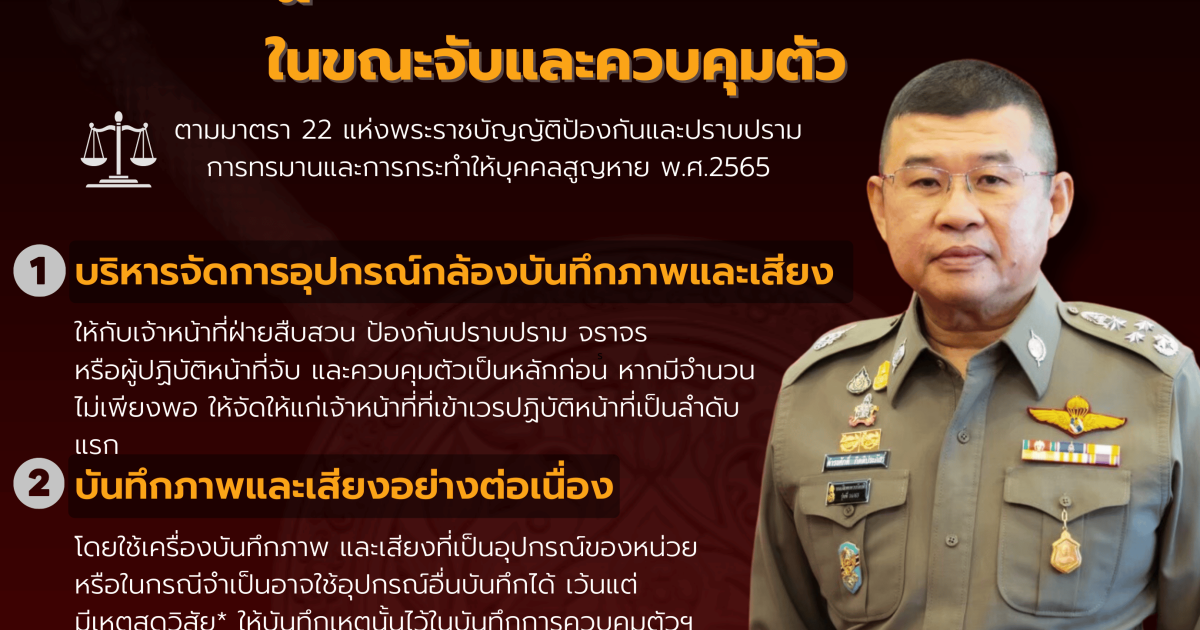 แนวทางการปฏิบัติเกี่ยวกับการบันทึกภาพและเสียงในขณะจับและควบคุมตัวตามมาตรา 22 แห่ง พ.ร.บ.ป้องกันและปราบปรามการทรมานและการกระทำให้บุคคลสูญหาย พ.ศ.2565