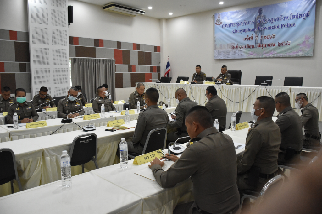 ราชการประจำปี 2566 ณ ห้องประชุมเตชะธัมโม ภ.จว.ชัยภูมิ โดยมี หน.สภ.ในสังกัด ร่วมประชุมผ่าน