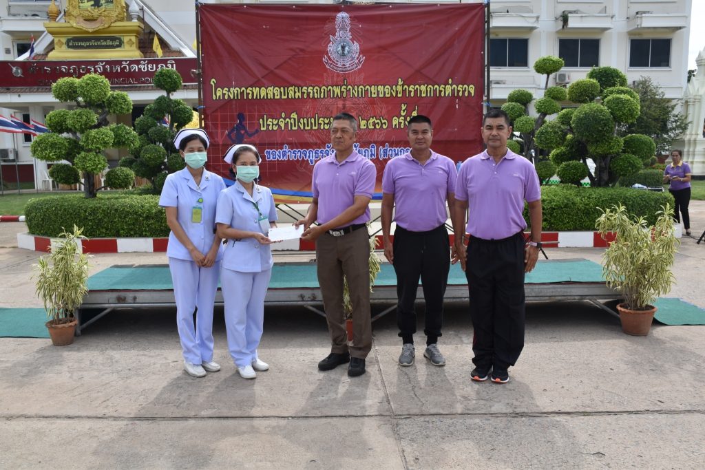 ๑๙ ก.ค.๖๖ เวลา ๑๔.๐๐ น. พล.ต.ต.ฉลอง สุขจันทร์ ผบก.ภ.จว.ชัยภูมิ พร้อมด้วย พ.ต.อ.ยรรยง จันทร์เขียว รอง ผบก.ก.จว.ชัยภูมิ, พ.ต.อ.อิทธิโชค เกิดผล รอง ผบก.ก.จว.ชัยภูมิ, พ.ต.อ.พิชิต มีแสง รอง ผบก.ภ.จว.ชัยภูมิ, พ.ต.อ.สุขสันต์ ไตรทิพย์ รอง ผบก.ก.จว.ชัยภูมิ, พ.ต.อ.ปราโมทย์ สิมหลวง รอง ผบก.ก.จว.ชัยภูมิ, พ.ต.อ.วัฒนชัย จันทาทุม รอง ผบก.ก.จว.ชัยภูมิ และช้าราชการตำรวจภูธรจังหวัดชัยภูมิ ร่วมการทดสอบสมรรถภาพร่างกาย ครั้งที่ ๒/๒๕๖๖ ณ บริเวณลานด้านหน้าอาคาร ภ.จว.ชัยภูมิ