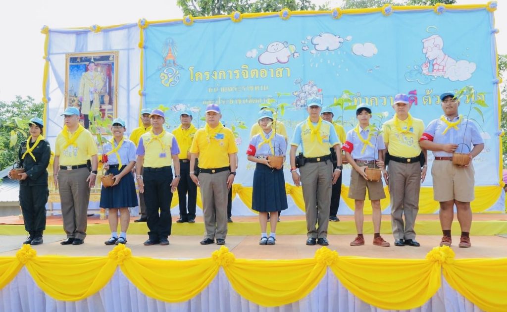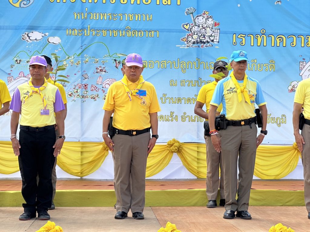 เมื่อวันที่ 26 ก.ค. ที่สวนป่าสาธารณะ บ้านตาดพัฒนา หมู่ที่ 13 ตำบลตลาดแร้ง อำเภอบ้านเขว้า จังหวัดชัยภูมิ พลตำรวจเอก ดำรงศักดิ์ กิตติประภัสร์ ผบ.ตร. พร้อมด้วย พลตำรวจเอก ต่อศักดิ์ สุขวิมล รอง ผบ.ตร. , นายโสภณ สุวรรณรัตน์ ผู้ว่าราชการจังหวัดชัยภูมิ , พล.ต.ท.สมประสงค์ เย็นท้วม ผบช.ภ.3 พล.ต.ท.นัยวัฒน์ ผะเดิมชิต ผบช.สยศ.ตร. , ศูนย์จิตอาสาพระราชทานจังหวัดชัยภูมิ , ตำรวจภูธรภาค 3 , จังหวัดชัยภูมิ , ฝ่ายปกครอง , ตำรวจภูธรจังหวัดชัยภูมิ นักเรียน นักศึกษา สถาบันการศึกษา โรงเรียนในจังหวัดชัยภูมิ และประชาชนจิตอาสา กว่า 1,000 คน