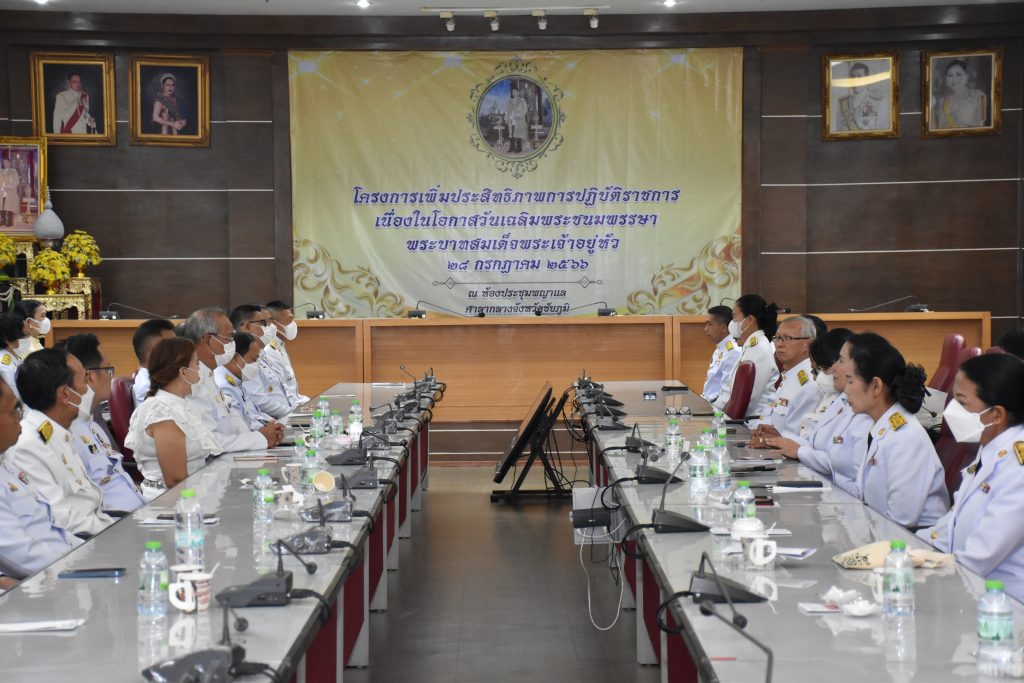 เวลา ๘.๐๐ น. ร่วมโครงการเพิ่มประสิทธิภาพการปฏิบัติราชการด้วยสมาธิเฉลิมพระเกียรติและพิธีถวายสัตย์ปฏิญาณเพื่อเป็นข้าราชการที่ดีและพลังของแผ่นดิน (กิจกรรมต่อเนื่อง) ณ บริเวณหน้าศาลากลางจังหวัดชัยภูมิ