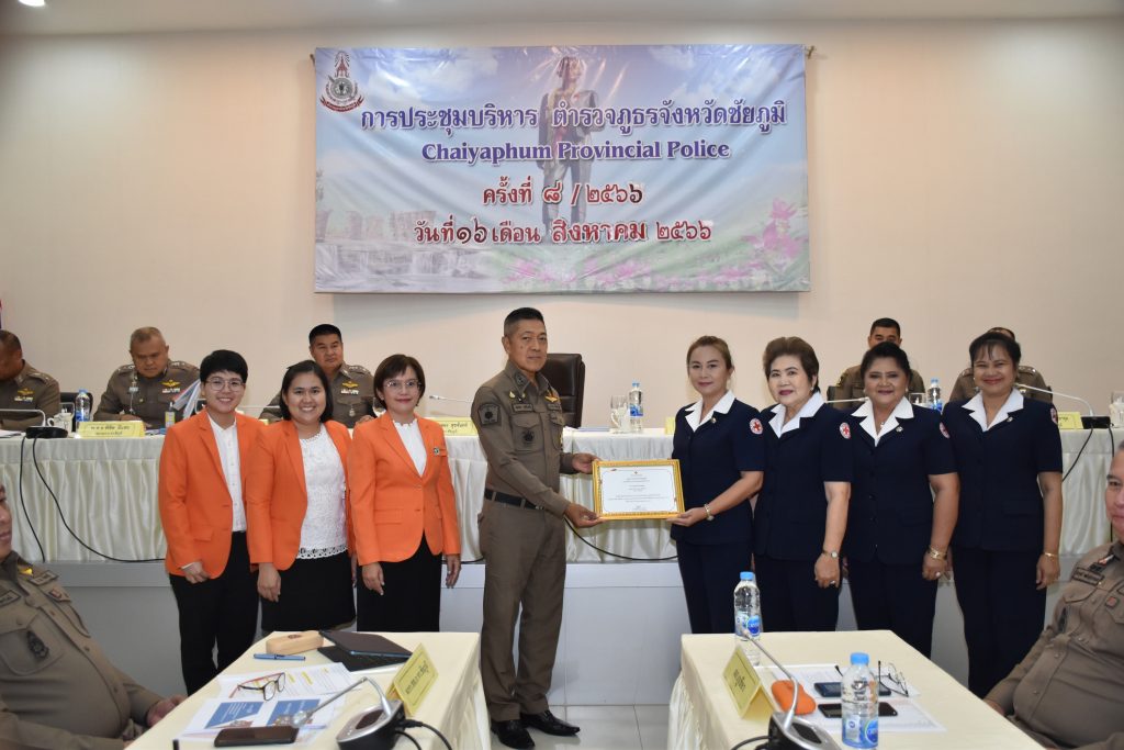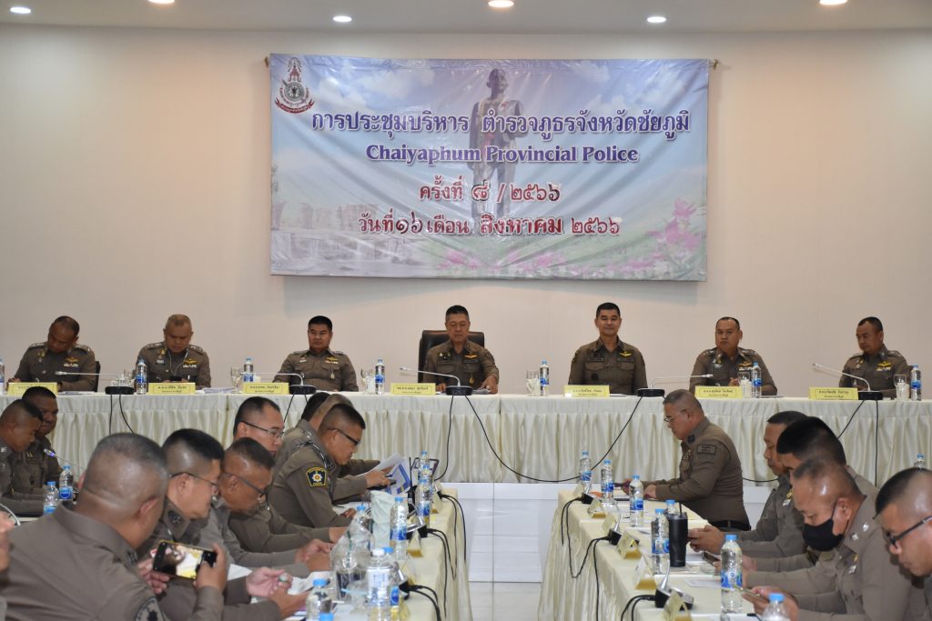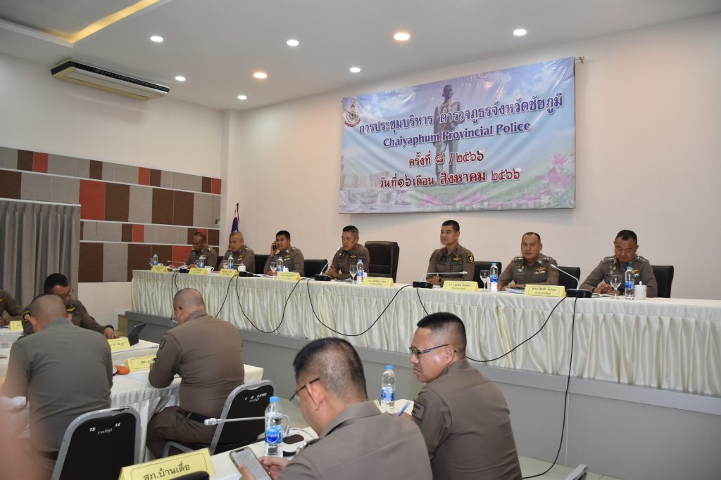 ๑๖ ส.ค.๖๖ เวลา ๑๓.๓๐ น. พล.ต.ต.ฉลอง สุขจันทร์ ผบก.ก.จว.ชัยภูมิ เป็นประธานการประชุมบริหาร ภ.จว.ชัยภูมิ ครั้งที่ ๘/๒๕๖๖ ประจำเดือน สิงหาคม ๒๕๖๖ พร้อมด้วย พ.ต.อ.รรยง จันทร์เขียว รอง ผบก.ฯ, พ.ต.อ.อิทธิโชค เกิดผล รอง ผบก.ฯ, พ.ต.อ.พิชิต มีแสง รอง ผบก.ฯ, พ.ต.อ.สุขสันต์ ไตรทิพย์ รอง ผบก.ฯ, พ.ต.อ.ปราโมทย์ สิมหลวง รอง ผบก.ฯ, พ.ต.อ.วัฒนชัย จันทาทุม รอง ผบก.ฯ, ผกก.ฝอ.ฯ, ผกก.สืบสวนฯ, ผกก.(สอบสวน)ฯ, หน.สภ.ในสังกัด ร่วมประชุมฯ ณ ห้องประชุมเตชะธัมโม ภ.จว.ชัยภูมิ โดยก่อนเริ่มวาระการประชุมได้มอบประกาศนียบัตรดีเด่นด้านต่างๆ แก่ข้าราชการตำรวจในสังกัด