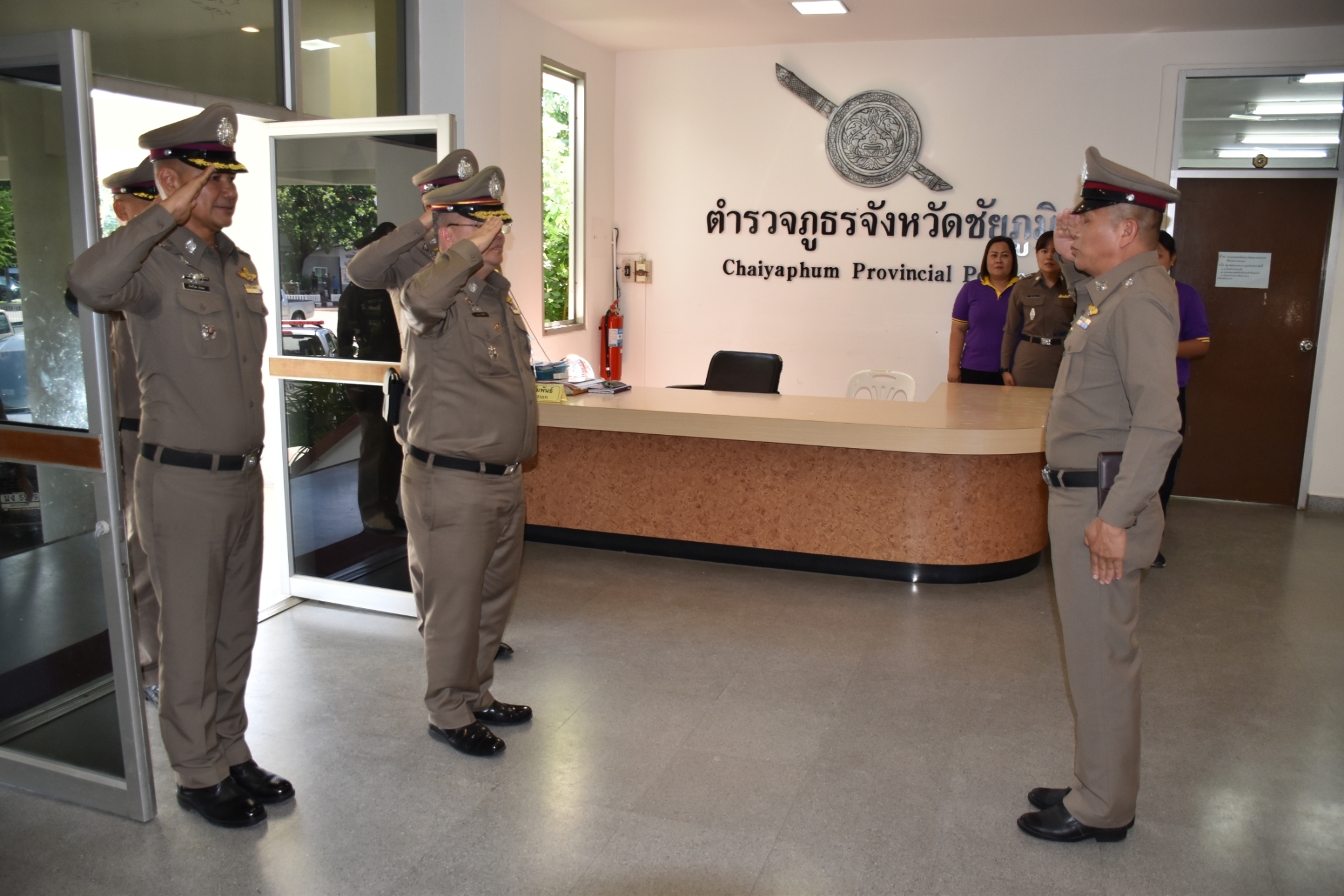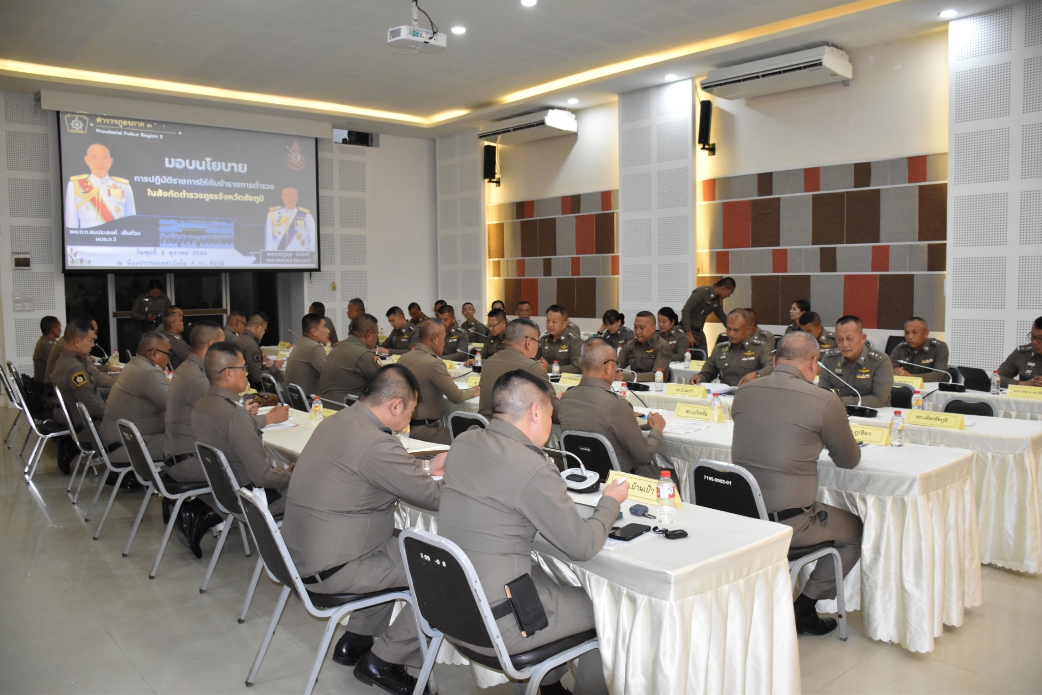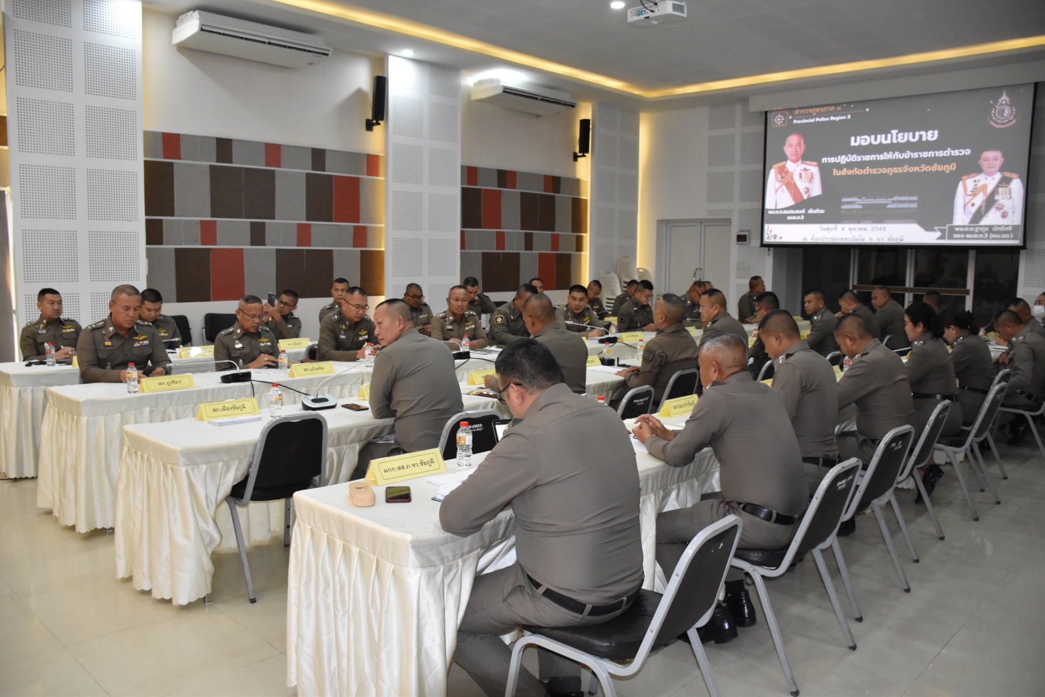 พล.ต.ต.ฐากูร นัทธีศรี รอง ผบช.ภ.3 รักษาราชการแทน ผบก.ภ.จว.ชัยภูมิ เป็นประธานประชุมรับมอบนโยบายการปฏิบัติราชการให้แก่ข้าราชการตำรวจในสังกัด ภ.จว.ชัยภูมิ