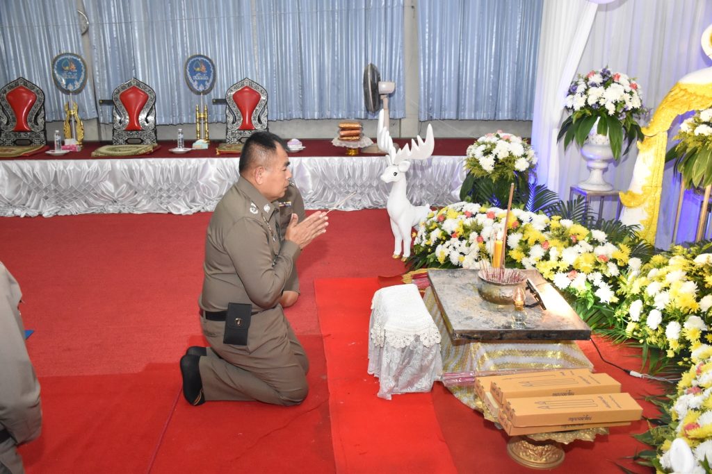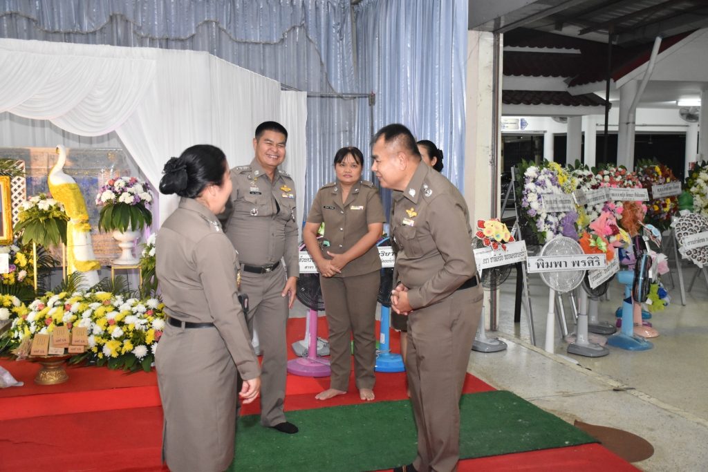18 ธ.ค.66 เวลา 20.00 น. พล.ต.ต.สุชาติ คล้ายจันทร์พงษ์ ผบก.ภ.จว.ชัยภูมิ พร้อมด้วย พ.ต.อ.ยรรยง จันทร์เขียว รองผบก.ภ.จว.ชัยภูมิ และข้าราชการตำรวจ ฝอ.ภ.จว.ชัยภูมิร่วมพิธีสวด พระอภิธรรมศพ และพิธีฌาปนกิจศพ นายสันติ มณีรัตนรังษี สามีของ พ.ต.ท.หญิงเข็มทอง มณีรัตนรังษี รอง ผกก.ฝอ. ภ.จว.ชัยภูมิ