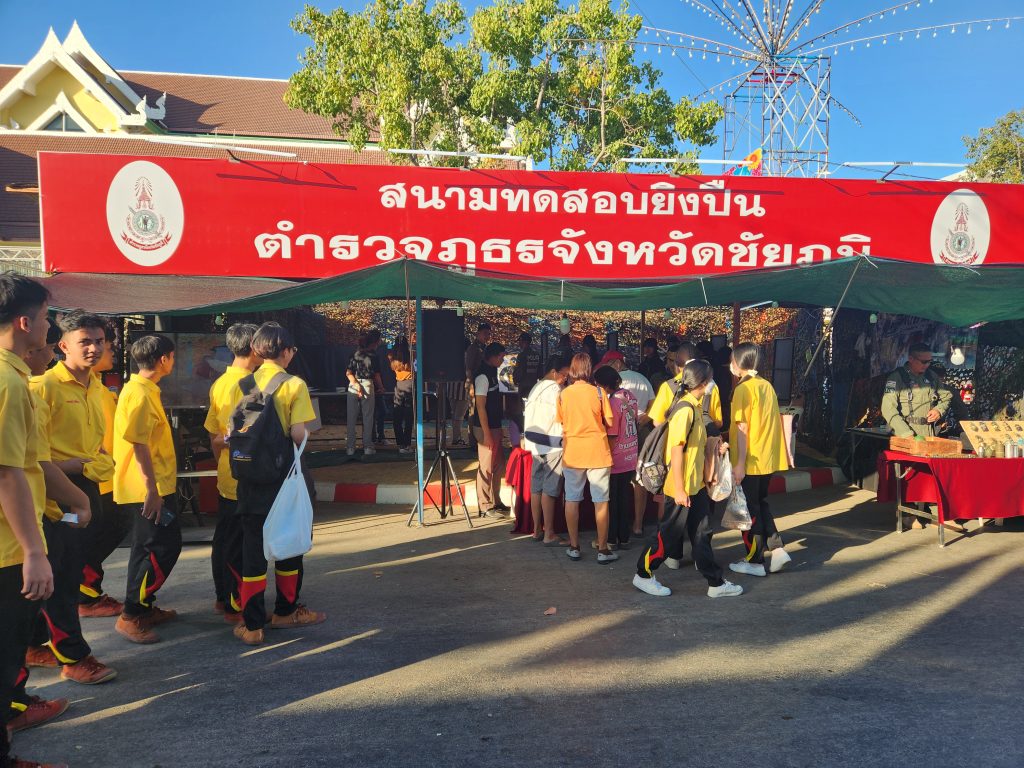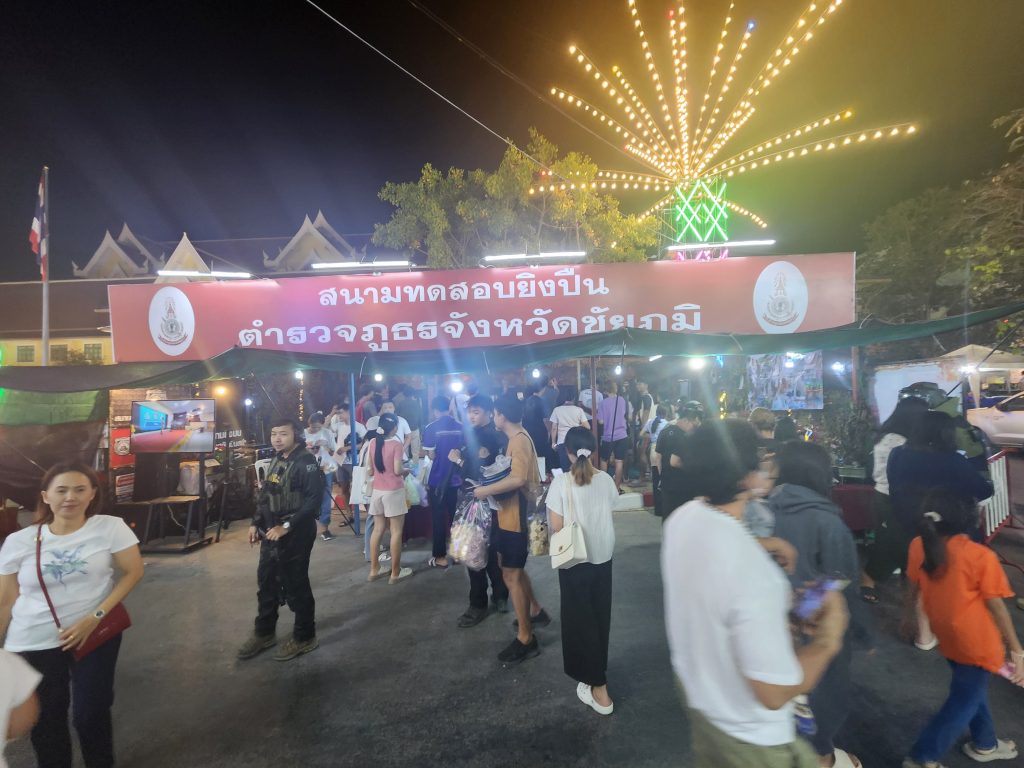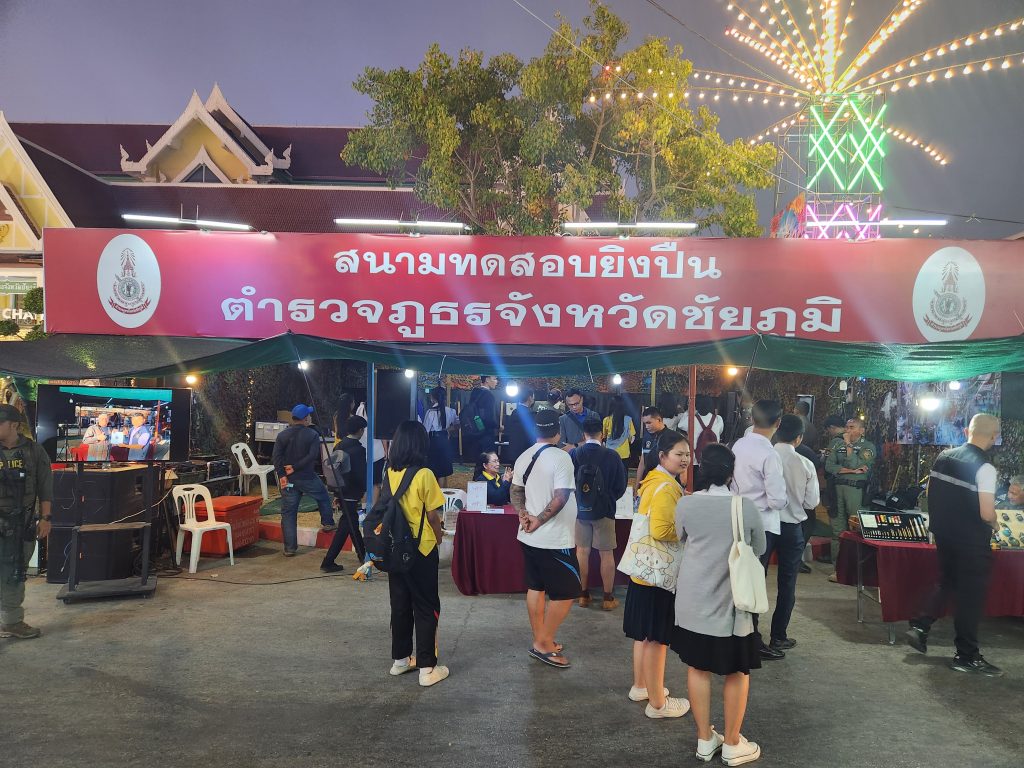 ภ.จว.ชัยภูมิโดย พล.ต.ต.สุชาติ คล้ายจันทร์พงษ์ ผบก.ภ.จว.ชัยภูมิ ขอเชิญท่านที่มาเที่ยวงานเจ้าพ่อพญาแลและงานกาชาดจังหวัดชัยภูมิ ร่วมทดสอบยิงปืนกับบูธของตำรวจภูธรจังหวัดชัยภูมิ โดยภายในมีการแสดงนิทรรศการการปฏิบัติงานของชุดเก็บกู้วัตถุระเบิด (EDO) ชุดปฏิบัติการพิเศษ กิจกรรมทดสอบยิงปืนและความรู้การใช้อาวุธปืน ณ หน้าศาลากลางจังหวัดชัยภูมิ(หลังเก่า) ตั้งแต่วันที่ 12 – 20 มกราคม 2567