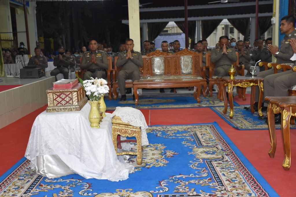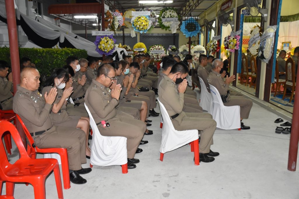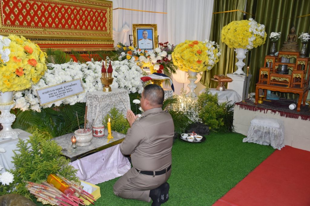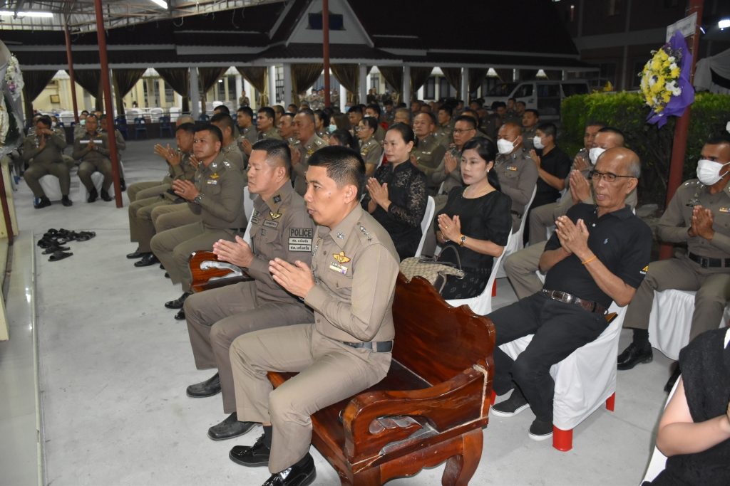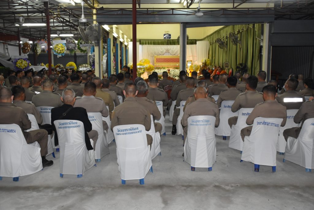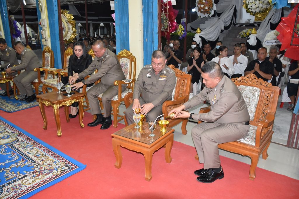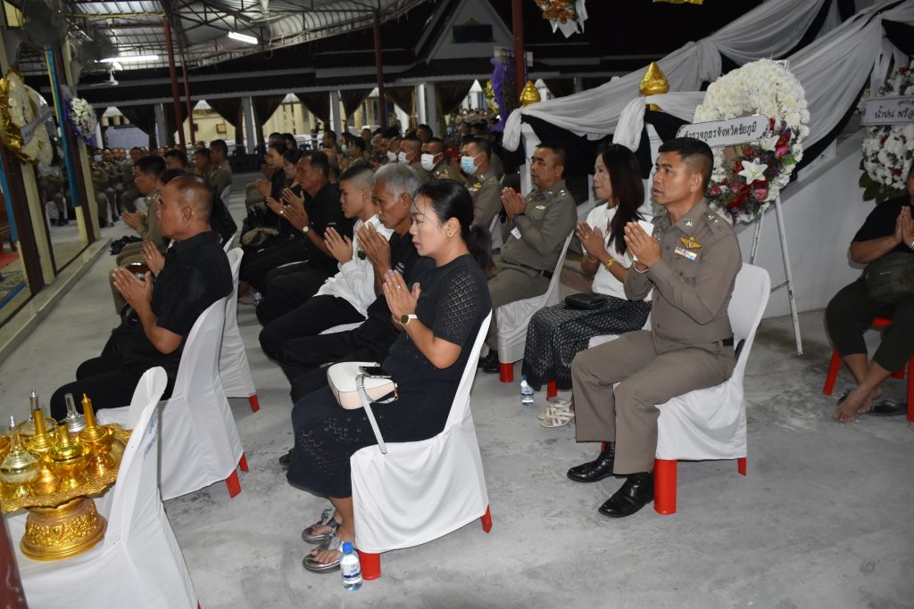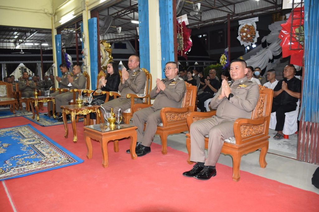 เมื่อ 30 ม.ค.67 เวลา 19.00 น. พล.ต.ท.ฐากูร นัทธีศรี ผบช.ภ.3 ,พล.ต.ต.ระพีพงษ์ สุขไพบูลย์ รอง ผบช.ฯ ,พล.ต.ต.ชาญชัย พงษ์พิชิตกุล รอง ผบช.ฯ,พล.ต.ต.สุชาติ คล้ายจันทร์พงษ์ ผบก.ภ.จว.ชัยภูมิ , พ.ต.อ.อิทธิโชค เกิดผล รอง ผบก.ฯ, พ.ต.อ.สุขสันต์ ไตรทิพย์ รอง ผบก.ฯ, พ.ต.อ.ปราโมทย์ สิมหลวง รอง ผบก.ฯ, พ.ต.อ.พิชัย ทูลธรรม ผกก.ฝอ.ฯ, หน.สภ. และข้าราชการตำรวจในสังกัด ภ.จว.ชัยภูมิ ร่วมพิธีสวดพระอภิธรรมศพ ด.ต.กฤษณ์ สุวรรณโคตร ผบ.หมู่ (ป.) สภ.คอนสวรรค์ ซึ่งเสียชีวิตในขณะปฏิบัติหน้าที่ถวายความปลอดภัยสมเด็จพระเจ้าน้องนางเธอ เจ้าฟ้าจุฬาภรณวลัยลักษณ์ อัครราชกุมารี กรมพระศรีสวางควัฒนวรขัตติยราชนารี ณ วัดทรงศิลาพระอารามหลวง ต.ในเมือง อ.เมือง จว.ชัยภูมิ