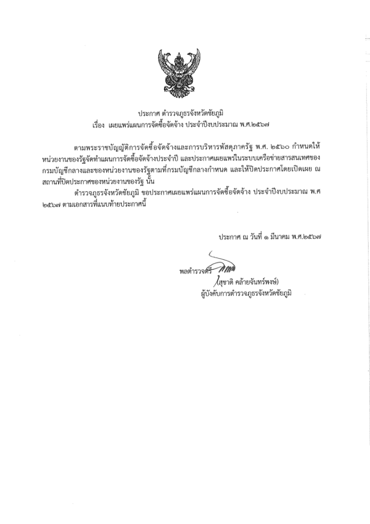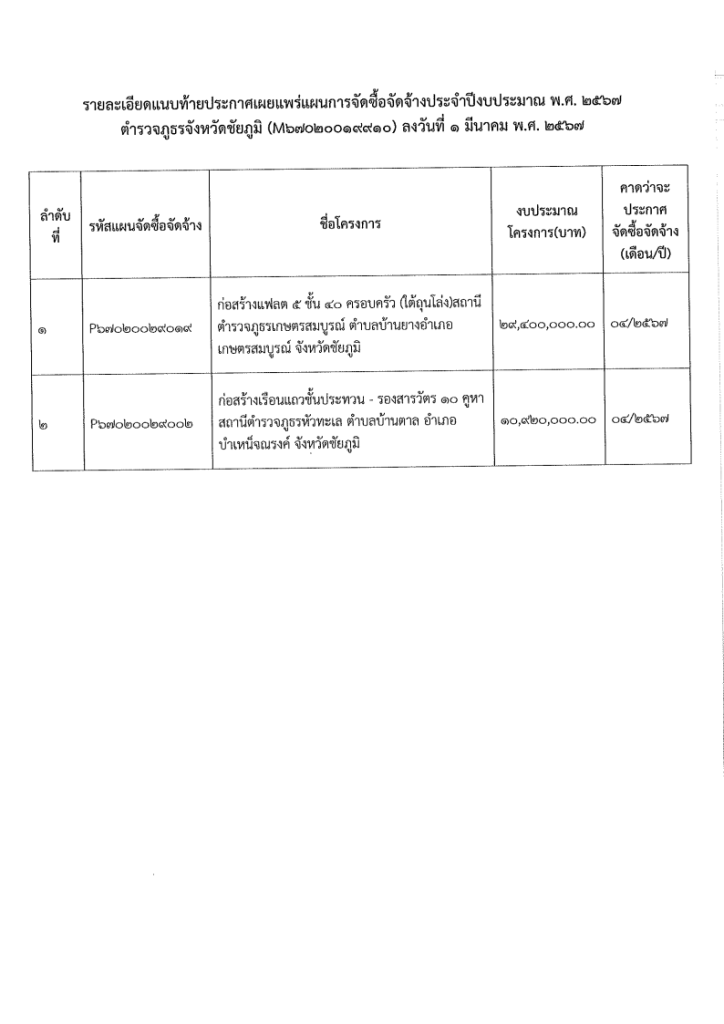ประกาศแผนจัดซื้อจัดจ้าง ประจำปีงบประมาณ ๒๕๖๗ จำนวน ๒ โครงการ