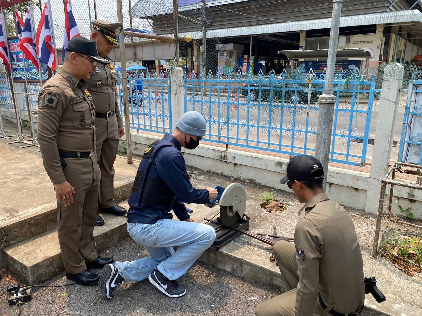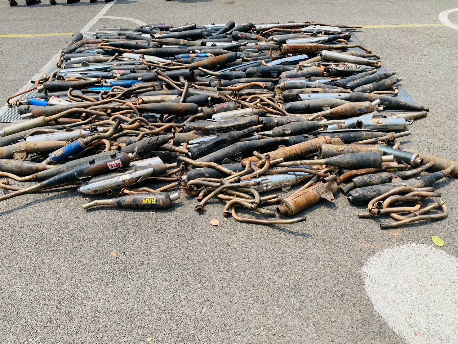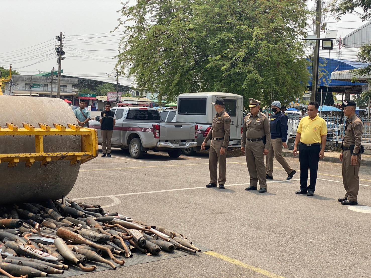 พล.ต.ต.สุชาติ คล้ายจันทร์พงษ์ ผบก.ภ.จว.ชัยภูมิ ร่วมพิธีการทำลายอาวุธปืนของกลาง และท่อไอเสียรถดัดแปลงที่ผิดกฎหมาย ของ สภ.จัตุรัส