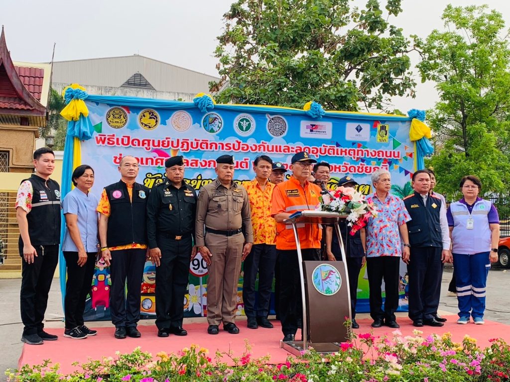 นายอนันต์ นาคนิยม ผู้ว่าราชการจังหวัดชัยภูมิ เป็นประธานพิธีเปิดศูนย์ปฏิบัติการป้องกันและลดอุบัติเหตุทางถนนช่วงเทศกาลสงกรานต์ พ.ศ. 2567 จังหวัดชัยภูมิ พร้อมด้วย นายสมบัติ ไตรศักดิ์ รองผู้ว่าราชการจังหวัดชัยภูมิ พล.ต.ต.สุชาติ คล้ายจันทร์พงษ์ ผบก.ภ.จวชัยภูมิ นางสาวกานต์จรัส เอียดทองใส ปลัดจังหวัดชัยภูมิ หัวหน้าส่วนราชการ ผู้แทนศูนย์ ปภ.เขต 5 นครราชสีมา หน่วยงานรัฐวิสาหกิจ ภาคเอกชน มูลนิธิ จิตอาสา อาสาสมัคร อปพร. และประชาชนในพื้นที่เข้าร่วมกิจกรรม ประมาณ 350 คน ซึ่งกิจกรรมประกอบด้วย