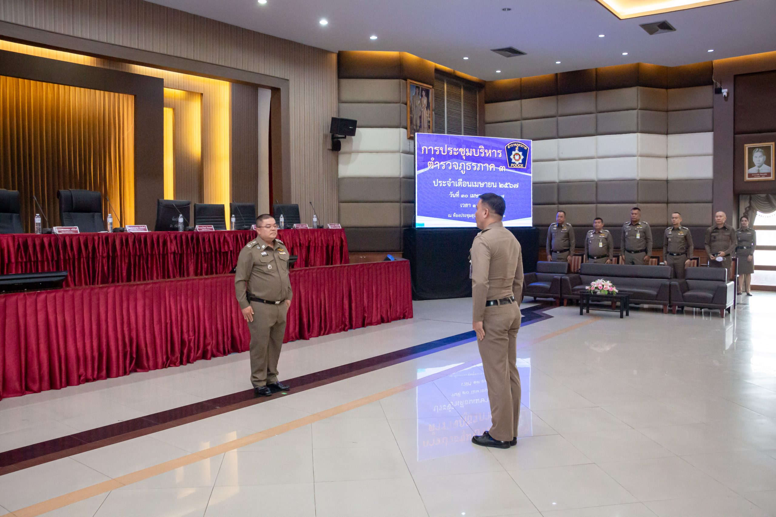 พล.ต.ต.สุชาติ คล้ายจันทร์พงษ์ ผบก.ภ.จว.ชัยภูมิ พร้อมด้วย รอง ผบก.ฯ, ผกก.ฯ หัวหน้าสถานี ร่วมประชุมบริหาร ภ.3