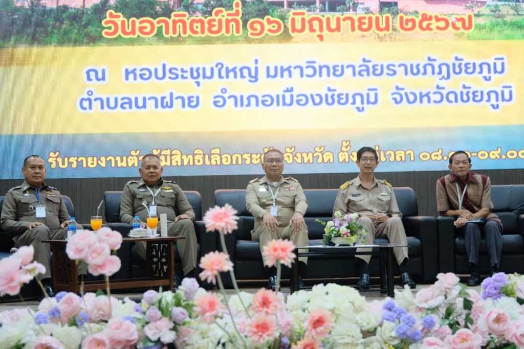 16 มิ.ย.2567 เวลา 08.00 น. พล.ต.ต.สุชาติ คล้ายจันทร์พงษ์ ผบก.ภ.จว.ชัยภูมิ พร้อมด้วย พ.ต.อ.สุขสันต์ ไตรทิพย์ รอง ผบก.ภ.จว.ชัยภูมิ ตรวจเยี่ยมและควบคุมการปฏิบัติการรักษาความปลอดภัยหน่วยเลือกสมาชิกวุฒิสภาฯ พบข้าราชการตำรวจ ปฏิบัติหน้าที่รักษาความสงบเรียบร้อย ณ ห้องประชุมมหาวิทยาลัยราชภัฎชัยภูมิ เหตุการณ์ทั่วไปปกติ เป็นไปด้วยความเรียบร้อย
