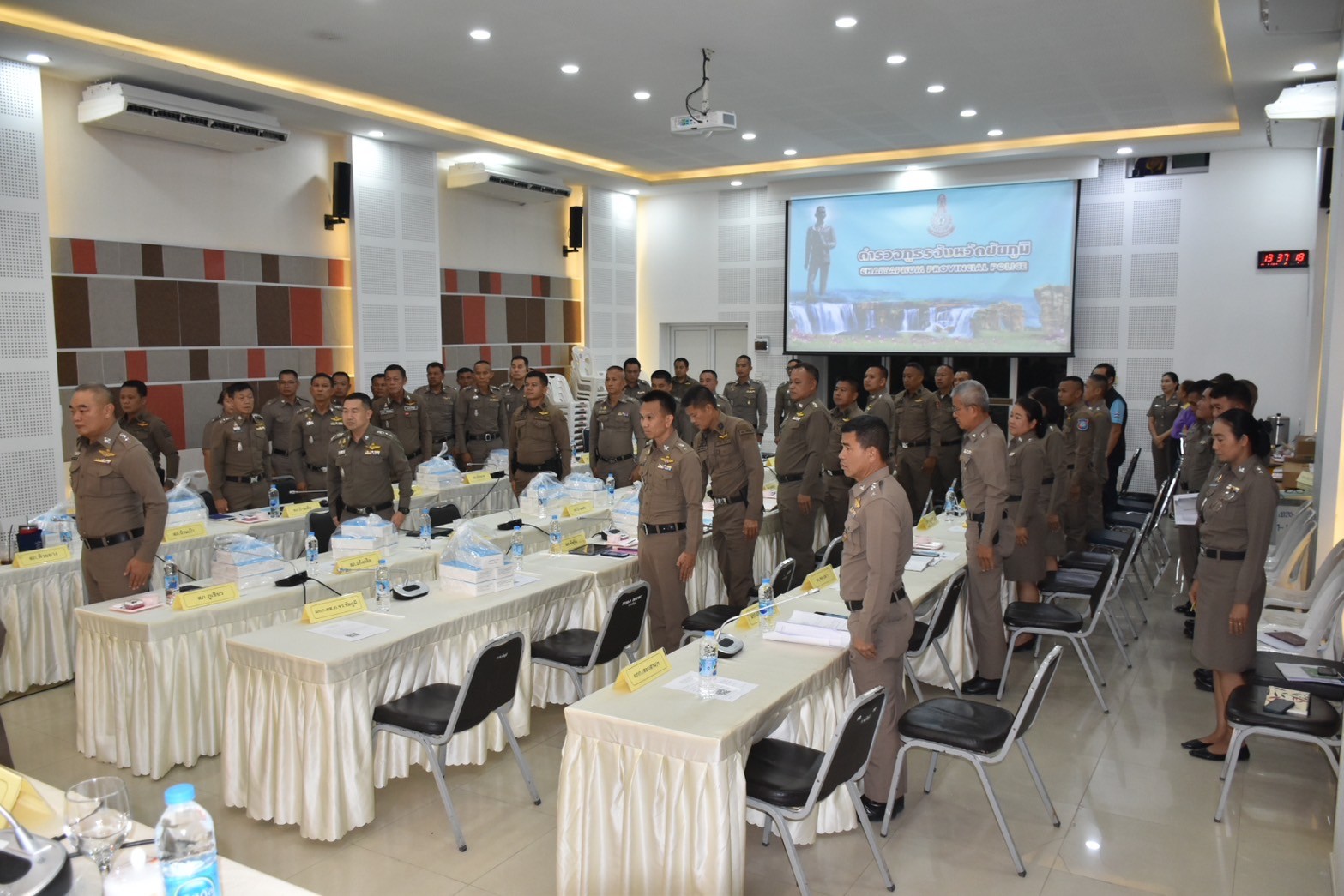 17 ก.ค.67 เวลา 13.30 น. พล.ต.ต.สุชาติ คล้ายจันทร์พงษ์ ผบก.ภ.จว.ชัยภูมิ พร้อมด้วย พ.ต.อ.ยรรยง จันทร์เขียว รอง ผมก.ฯ. พ.ต.อ.อิทธิโชค เกิดผล รอง ผบกฯ,พ.ต.อ.พิชิต มีแสง รอง ผบกฯ พ.ต.อ.สุขสันต์ ไตรทิพย์ รอง ผมก.ฯ, พ.ต.อ.ปราโมทย์ ลืมหลวง รอง ผบก.ฯ, พ.ต.อ.วัฒนชัย จันทาทุม รอง ผบก.ฯ, หน.สภ.ทุกแห่งในสังกัด, ผกก.สืบสวนฯ, ผกก.(สอบสวน) กลุ่มงานสอบสวนฯ, ผกก.ฝอ.ฯ, หน่วยในสังกัด ตร. ที่ปฏิบัติหน้าที่ในพื้นที่ และข้าราชการตำรวจในสังกัด ร่วมประชุมบริหาร ภ.จว.ชัยภูมิ ประจำเดือน กรกฎาคม 2567 ณ ห้องประชุมเตชะธัมโม ภ.จว.ชัยภูมิ