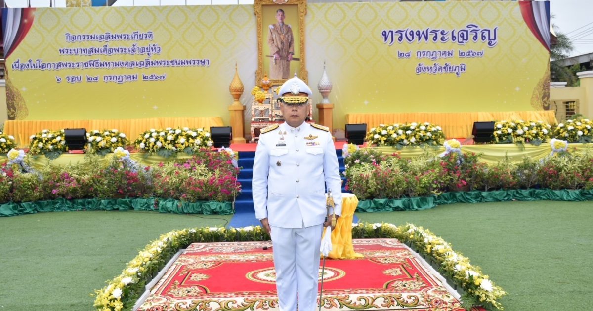 เวลา 07.00 น. พล.ต.ต.สุชาติ คล้ายจันทร์พงษ์ ผบก.ภ.จว.ชัยภูมิ พร้อมด้วย ข้าราชการตำรวจในสังกัด ภ.จว.ชัยภูมิ ร่วมพิธีทำบุญตักบาตรถวายพระราชกุศล เนื่องในโอกาสพระราชพิธีมหามงคลเฉลิมพระชนมพรรษา 6 รอบ 28 กรกฎาคม 2567 เพื่อเป็นการถวายความจงรักภักดีและสำนึกในพระมหากรุณาธิคุณ ณ บริเวณลานหน้าศาลากลางจังหวัดชัยภูมิ