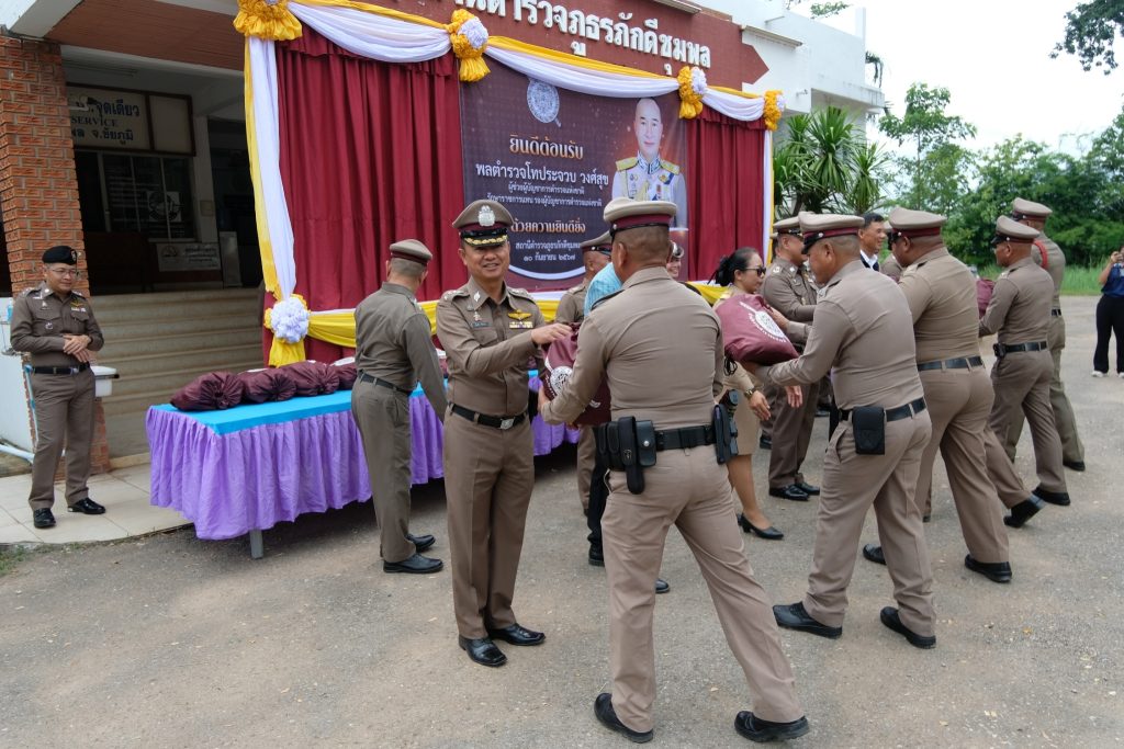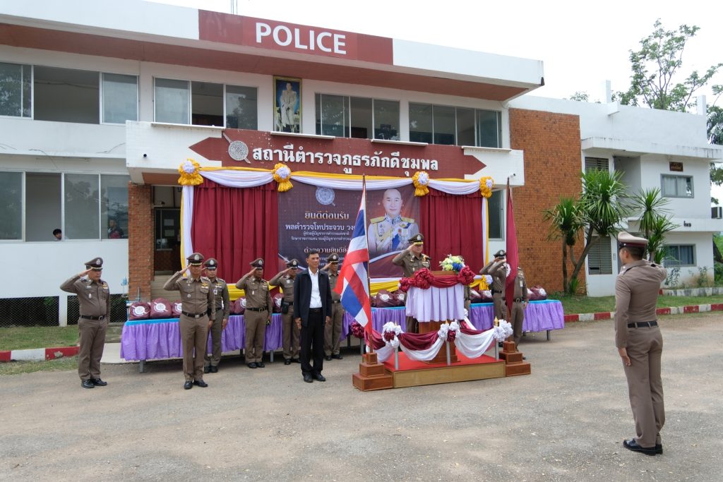 เวลา 10.30 น. พ.ต.อ.วัฒนชัย จันทาทุม รอง ผบก.ภ.จว.ชัยภูมิ พร้อมด้วย พ.ต.อ.วรวุฒิ เล็กสุนทร ผกก.สภ.ภักดีชุมพล และหน่วยงานภาคีร่วมต้อนรับการตรวจเยี่ยมบำรุงขวัญ สภ.ภักดีชุมพล ของ พล.ต.ท.ประจวบ วงศ์สุข ผู้ช่วย ผม.ตร.รรท.รอง ผม.ตร. ณ สภ.ภักดีชุมพล