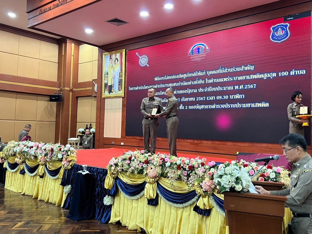 17 ก.ย.67 เวลา 10.00 น. พ.ต.อ.พิชิต มีแสง รอง ผบก.ภ.จว.ชัยภูมิ พร้อมด้วย พ.ต.อ.อาทิตย์ ฉัตรชัยรัตนเวช ผกก.สภ.จัตุรัส เข้ารับโล่ยกย่องเชิดชูเกียรติให้แก่บุคคล และหน่วยงานที่มีส่วนร่วมสำคัญในการดำเนินโครงการชุมชนบำบัดอย่างยั่งยืน ฯ 100 ตำบล และประชุม ศอ.ปส.ตร. ครั้งที่ 4/2567 ณ ห้องประชุมพรหมนอก ชั้น 2 บช.ปส. เขตหลักสี่ หรุงเทพมหานคร