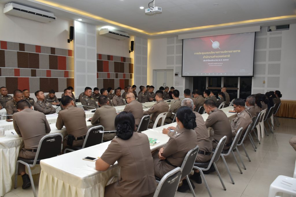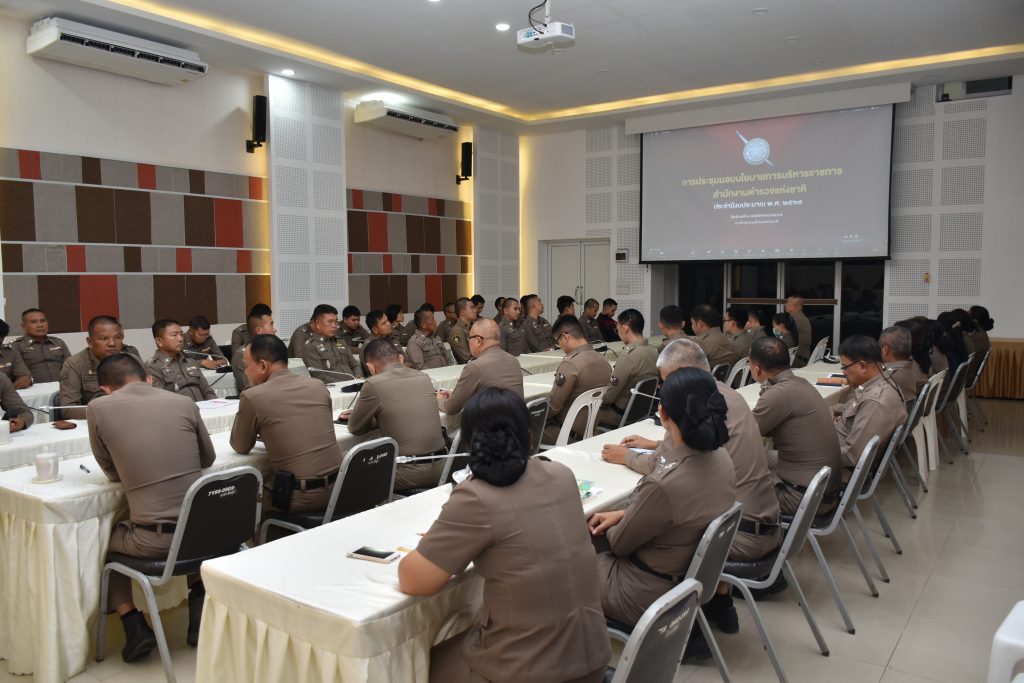 ตร. ประจำปึงบประมาณ พ.ศ. 2568 ณ ห้องประชุมเตชะธัมโม โดยมี หน.สก.ในสังกัดเฝ้าฟัง ณ ที่ตั้งหน่วย