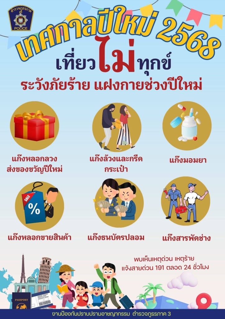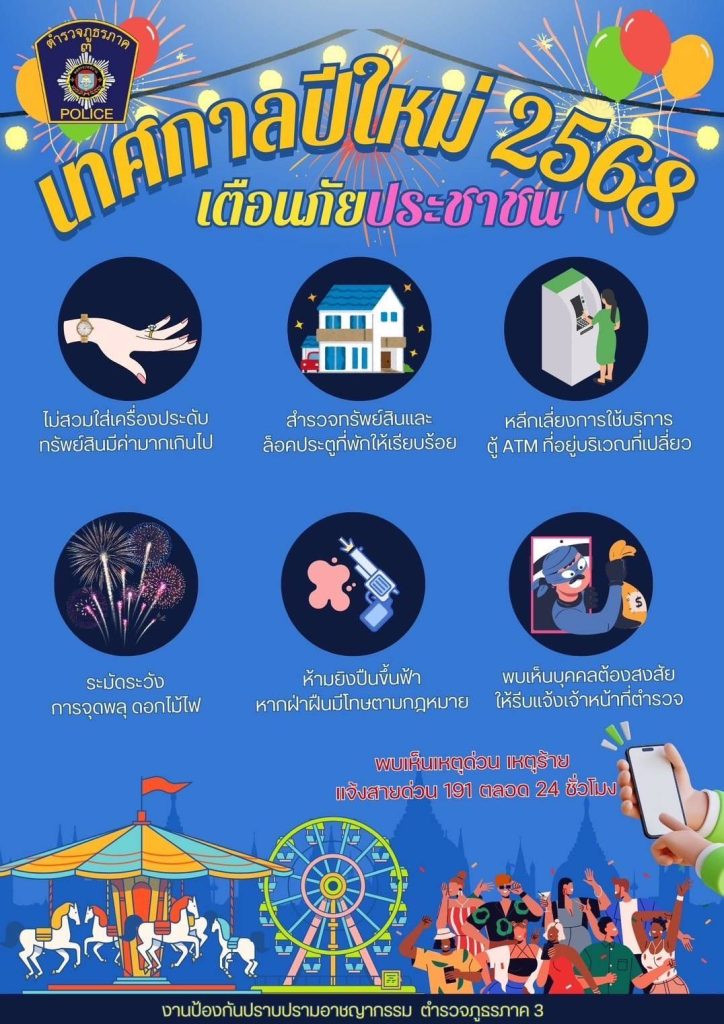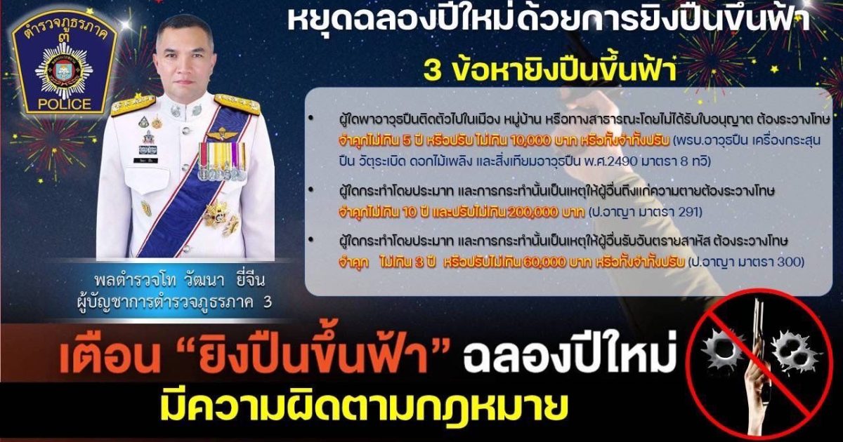 2.ย้ำเตือน “ยิงปืนขึ้นฟ้า” มีความผิดตามกฏหมายปีใหม่2568 ฝากบ้านไว้กับตำรวจ ฝากบ้าน4.0 เหตุด่วนเหตุร้าย191 ตรวจชัยภูมิยินดีรับใช้ประชาชน ตำรวจภูธรภาค3