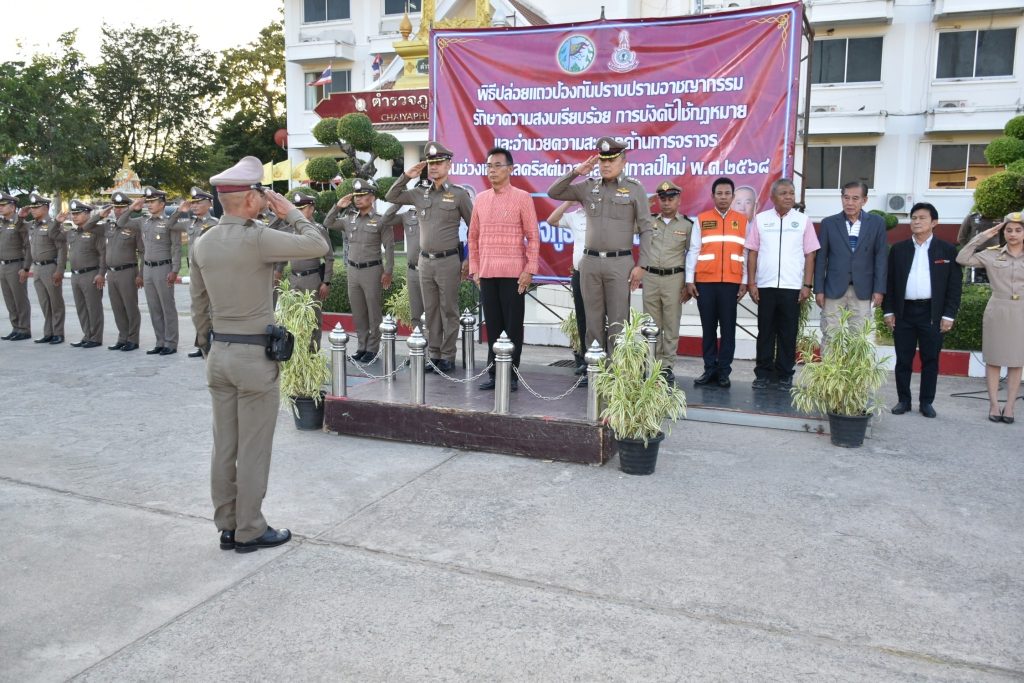 24 s.ค.67 เวล 17.00 u. w.ต.อ.อิทธิโชค เกิดผล รอง ผบก.ภ.จว.ชัยภูมิ, พ.ต.อ.พิชิต มีแสง รอง ผบก.ฯ, พ.ต.อ.สขสันต์ ไตรทิพย์ รอง ผบก.ฯ, พ.ต.อ.ปราโมทย์ ลืมหลวง รอง ผบก.ฯ,พ.ต.อ.วัฒนชัย จันทาทุม รอง ผบก.ฯ พร้อมด้วยหน่วยงานที่เกี่ยวข้อง และ กต.ตร.จังหวัดชัดชัยภูมิ รวมพิธีปล่อยแถวป้องกันปราบปรามอาชญากรรมรักษาความสงบเรียบร้อย การบังคับใช้กฎหมาย และจำนวยความสะดวกด้านการจราจร ในช่วงวันคริ สต์มาส และเทศกาลปีใหม่ 2568 ของ ก.จว.ชัยภูมิ โดยมีนายสมบัติ ไตรศักดิ์ รอง ผวจ.ชัยภูมิ เป็นประธาน ณ บริเวณหน้าอาคารที่ทำการ ภ.ว.จว.ชัยภูมิ