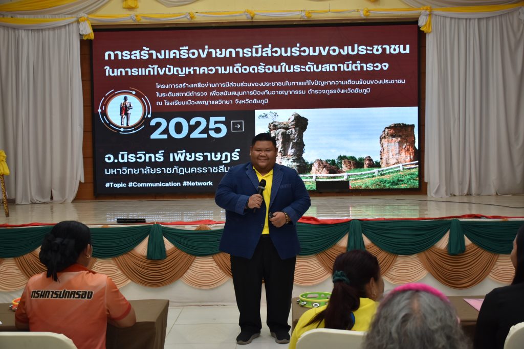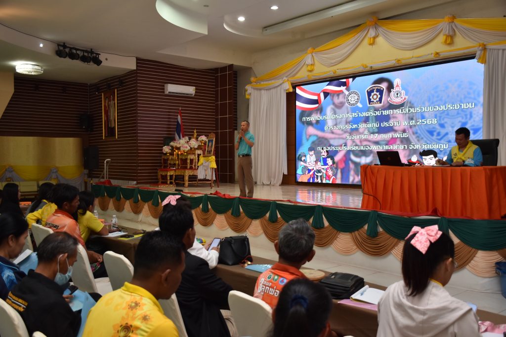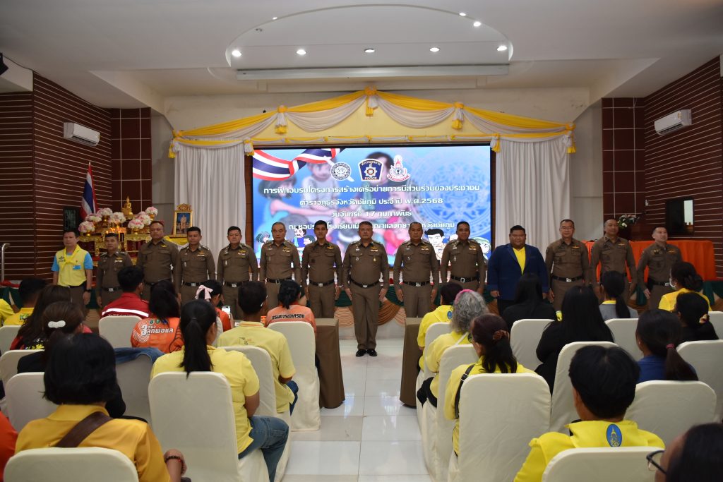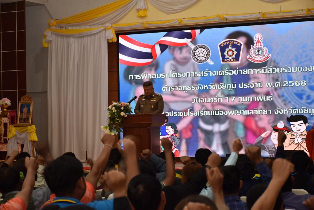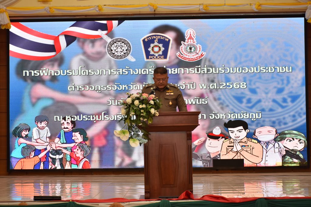 17 ก.พ. 68 เวลา 09.00 น. พล.ต.ต.สุจริต ปาณเล็ก ผบก.ภ.จว.ชัยภูมิ ประธานพิธีเปิดการอบรมโครงการสร้างเครือข่ายการมีส่วนร่วมของประชาชนในการแก้ไขปัญหาความเดือดร้อนของประชาชนในระดับสถานีตำรวจ เพื่อสนับสนุนการป้องกันอาชญากรรม ตำรวจภูธรจังหวัดชัยภูมิ ประจำปีงบประมาณ พ.ศ.2568 โดยมี พ.ต.อ.อิทธิโชค เกิดผล รอง ผบก.ฯ, พ.ต.อ.สุขสันต์ ไตรทิพย์ รอง ผบก.ฯ, พ.ต.อ.พิชัย ทูลธรรม ผกก.ฝอ.ฯ, ผกก.ฯในสังกัดฯ และชุดวิทยากรกระบวนการ ภ.จว.ชัยภูมิ พร้อมด้วยวิทยากรรับเชิญ พ.ต.ท.อธิเมศร์ พงศ์ทองวิทย์ รอง ผกก.ป.สภ.บ้านเขว้า/จิตอาสา 904, อาจารย์นิรวิทธ์ เพียราษฎร์ จากคณะวิทยาการจัดการ สาขาวิชาการจัดการทรัพยากรมนุษย์ มหาวิทยาลัยราชภัฏนครราชสีมา, นายชนพัฒน์ บุญปก นักวิชาการศึกษา รักษาการแทนราชการแทนผู้อำนวยการกองการศึกษา เทศบาลตำบลพันดุง อ.ขามทะเลสอ จ.นครราชสีมา และผู้เข้ารับการฝึกอบรม จำนวน 485 คน ร่วม ในพิธีเปิดการอบรมโครงการสร้างเครือข่ายการมีส่วนร่วมของประชาชนในการป้องกันอาชญากรรมระดับสถานีตำรวจ ประจำปีงบประมาณ พ.ศ.2568 รุ่นที่ 1 ณ ห้องประชุมโรงเรียนเมืองพญาแล