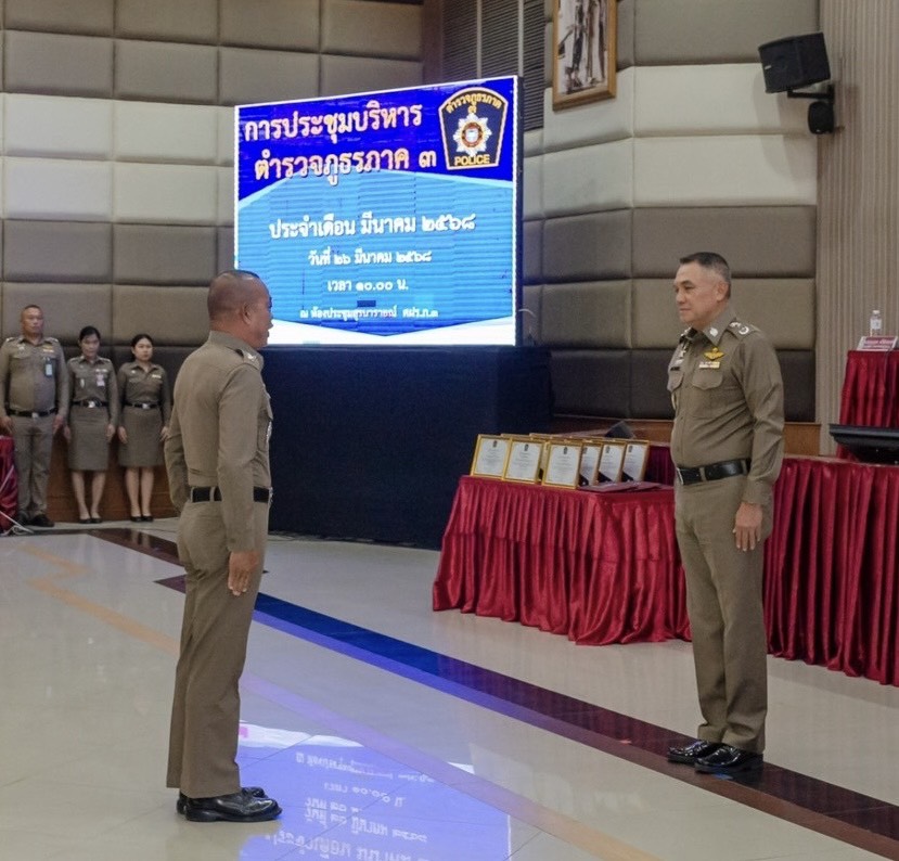 26 มี.ค.68 เวลา 10.00 น. พล.ต.ต.สุจริต ปาณเล็ก ผบก.ภ.จว.ชัยภูมิ พร้อมด้วย พ.ต.อ.พิชิต มีแสง รอง ผบก.ฯ,พ.ต.อ.วัฒนชัย จันทาทุม รอง ผบก.ฯ, พ.ต.อ.อานุภาพ ผิวอ่อน รอง ผบก.ฯ,พ.ต.อ.นิรันดร์ คิดบรรจง รอง ผบก.ฯ ผกก.ฝอ.ภ.จว.ชัยภุมิ,ผกก.สส.ภ.จว.ชัยภูมิ, ผกก.(สอบสวน)ฯ และหัวหน้าสถานีตำรวจในสังกัด ร่วมประชุมบริหาร ภ.3 ประจำเดือนมีนาคม 2568 โดยมี พล.ต.ท.วัฒนา ยี่จีน ผบช.ภ.3 เป็นประธาน ณ ห้องประชุมสุรนารายณ์ ศูนย์ฝึกอบรมตำรวจภูธรภาค 3 ตำบลจอหอ อำเภอเมือง จังหวัดนครราชสีมา