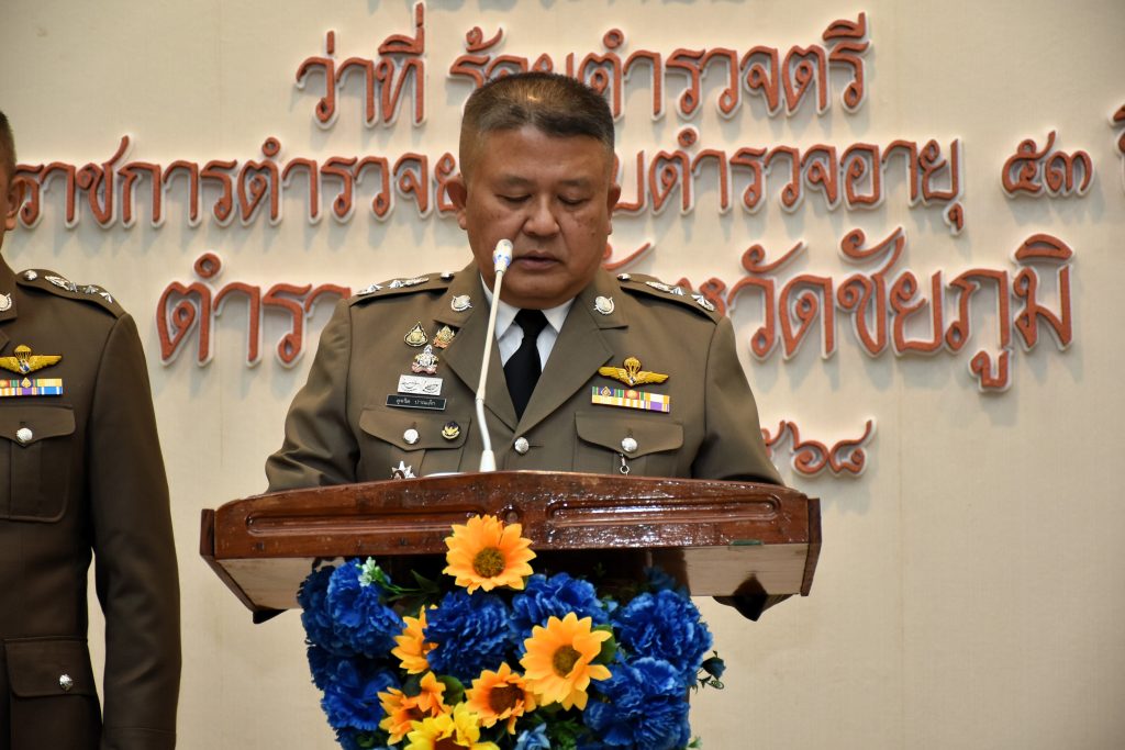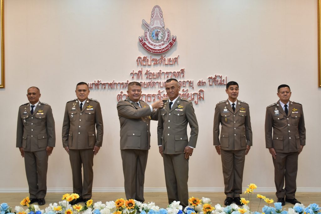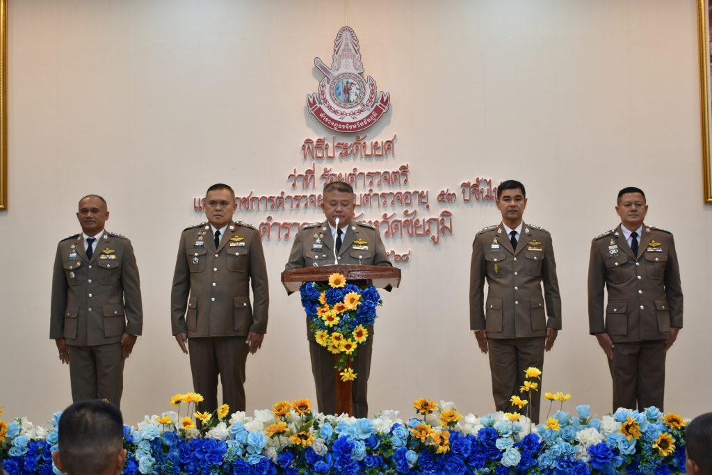 1 เม.ย.68 เวลา 09.30 น. พล.ต.ต.สุจริต ปาณเล็ก ผบก.ภ.จว.ชัยภูมิ พร้อมด้วย พ.ต.อ.อิทธิโชค เกิดผล รอง ผบก.ฯ, พ.ต.อ.พิชิต มีแสง รอง ผบก.ฯ, พ.ต.อ.สุขสันต์ โตรทิพย์ รอง ผบก.ฯ,พ.ต.อ.อานุภาพ ผิวอ่อน รอง ผบก.ฯ และ พ.อ.นิรันดร์ คิดบรรจง รอง ผบก.ฯ พร้อมด้วย หัวหน้าสถานีตำรวจภูธรในสังกัด ภ.จว.ชัยภูมิ เป็นประธานพิธีประดับยศแก่ผู้สำเร็จการฝึกอบรมหลักสูตรการฝึกอบรมข้าราชการตำรวจชั้นประทวนยศ ด.ต. อายุ 53 ปีขึ้นไป เพื่อเลื่อนตำแหน่งและเลื่อนยศแบบเลื่อนไหลเป็นข้าราชการตำรวจชั้นสัญญาบัตรถึงยศ ร.ต.อ. ประจำปีงบประมาณ พ.ศ.2568 (รุ่นที่ 14) ณ ห้องประชุมเตชะธัมโม ภ.จว.ชัยภูมิ