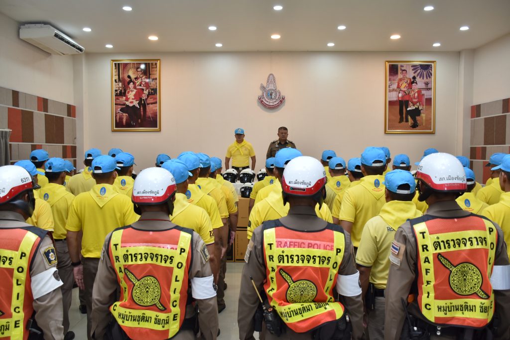 9 เม.ย.68 เวลา 10.00 น. พล.ต.ต.สุจริต ปาณเล็ก ผบก.ภ.จว.ชัยภูมิ พร้อมด้วย พ.ต.อ.นิรันดร์ คิดบรรจง รอง ผบก.ภ.จว.ชัยภูมิ มอบหมวกนิรภัยให้ สก.ในสังกัด ภ.จว.ชัยภูมิตามโครงการจิตอาสาจราจร รณรงค์ขับขี่ปลอดภัย สวมหมากนิรภัย เพื่อลดอุบัติเหตุจราจรทางบกเพื่อนำไปแจกจ่ายให้กับประชาชนในพื้นที่ ในช่วงเทศกาลสงกรานต์ ประจำปี 2568 โดยมีข้าราราชการตำรวจชุดจิดอาสาทุกสภ.ในสังกัด ภ.จว.ชัยภูมิ เป็นผู้แทนรับมอบ ณ ห้องประชมเตชะธัมโม ภ.จว.ชัยภูมิ