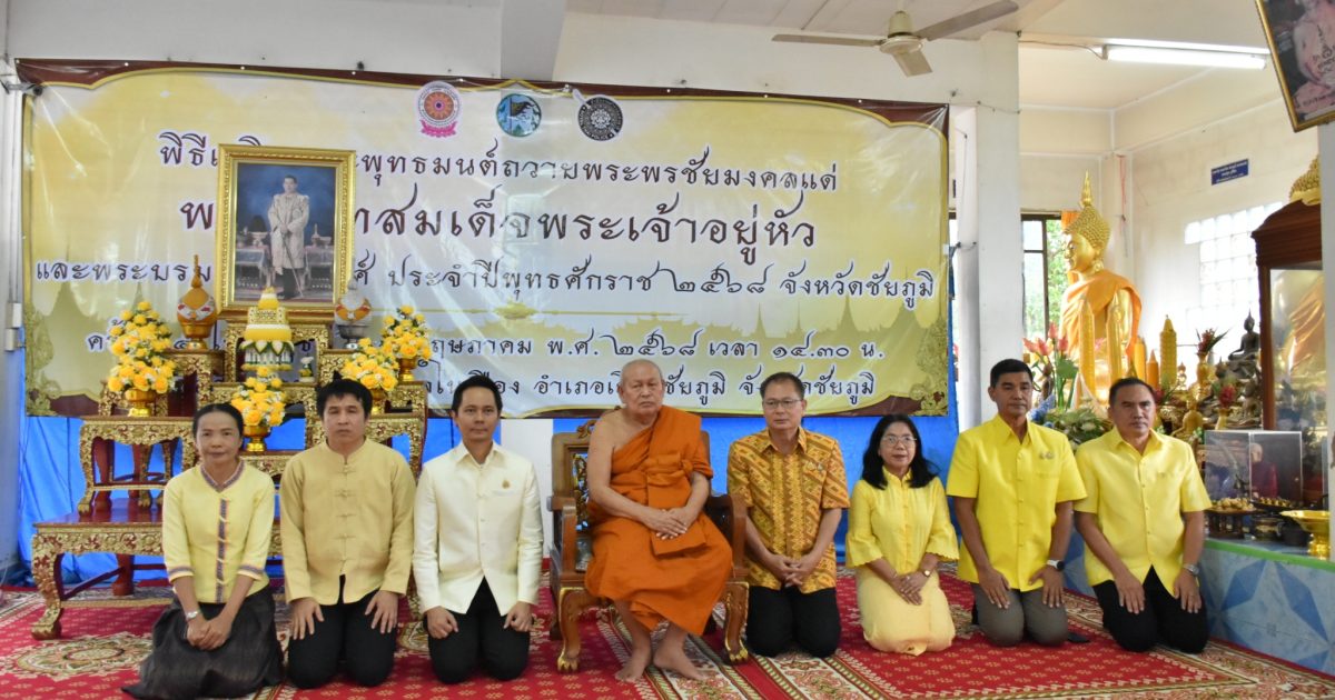 28 พ.ค.68 เวลา 14.30 น. พล.ต.ต.สุจริต ปาณเล็ก ผบก.ภ.จว.ชัยภูมิ มอบหมายให้ พ.ต.อ.อิทธิโชค เกิดผล รอง ผบก.ภ.จว.ชัยภูมิ พร้อมเจ้าหน้าที่ ฝ่ายอำนวยการ ภ.จว.ชัยภูมิ ร่วมพิธีเจริญพระพุทธมนต์ถวายพระพรชัยมงคลแด่พระบาทสมเด็จพระเจ้าอยู่หัว และพระบรม