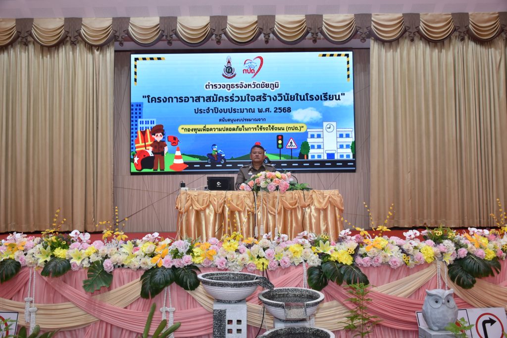 19 มิ.ย.68 เวลา 08.00 น. พล.ต.ต.สุจริต ปาณเล็ก ผบก.ภ.จว.ชัยภูมิ พร้อมด้วย พ.ต.อ.อานุภาพ ผิวอ่อน รอง ผบก.ฯ พ.ต.อ.ประสิทธิ์ เปรมกมล ผกก.สภ.เมืองชัยภูมิ ร่วมพิธีเปิดอบรมโครงการอาสาสมัครร่วมใจสร้างวินัยในโรงเรียน ประจำปีงบประมาณ พ.ศ.2568 ณ วิทยาลัยเทคนิคชัยภูมิ ต.ในเมือง อ.เมืองจว.ชัยภูมิ