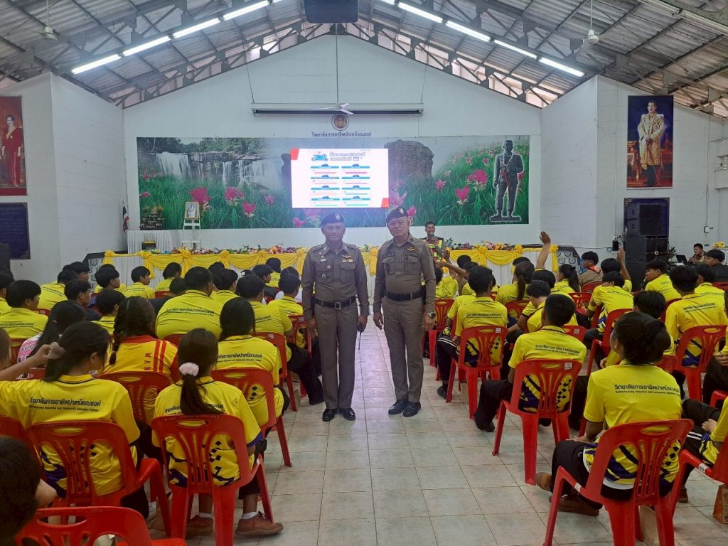 การอาชีพบำเหน็จณรงค์ อ.บำเหน็จณรงค์ จ.ชัยภูมิ โดยมี พ.ต.อ.เวชบุตร ชมบุญ ผกก.สภ.บำเหน็จณรงค์, สวป.และจนท.ตร. จราจร เป็นวิทยากร