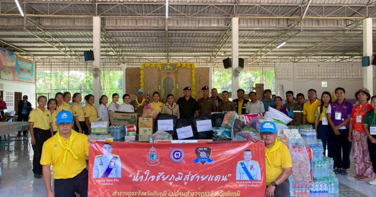 1 ส.ค.68 เวลา 14.00 น. พล.ต.ต.สุจริต ปาณเล็ก ผบก.ภ.จว.ชัยภูมิ พร้อมด้วย คุณเสาวณีย์ ตั่นเล่ง ประธานแม่บ้านตำรวจ ภ.จว.ชัยภูมิ,พ.ต.อ.อิทธิโชค เกิดผล รอง ผบก.ภ.จว.ชัยภูมิ,พ.ต.อ.พิชัย ทูลธรรม ผกก.ฝอ.ภ.จา.ชัยภูมิ,คณะ กต.ตร.ก.จว.ชัยภูมิ,คณะแม่บ้านตำรวจ ภ.จว.ชัยภูมิ และข้าราชการตำรวจจิตอาสาภูธรจังหวัดชัยภูมิ ร่วมมอบสิ่งของอุปโภค บริโภค ให้แก่