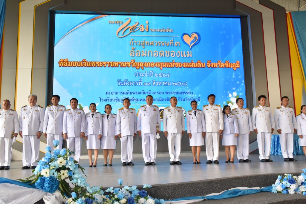 19 ส.ค.68 เวลา 10.00 น. พล.ต.ต.สุจริต ปาณเล็ก ผบก.ก.จว.ชัยภูมิ ร่วมพิธีมอบเงินขวัญถุงกลงทุนแม่ของแผ่นดิน ประจำปี 2568 โดยมี นายอนันต์ นาคนิยม ผู้ว่าราชการจังหวัดชัยภูมิเป็นประธานในพิธี ณ อาคารเฉลิมพระเกียรติ 7 รอบ พระชนมพรรษา โรงเรียนชัยภูมิภักดีชมพล