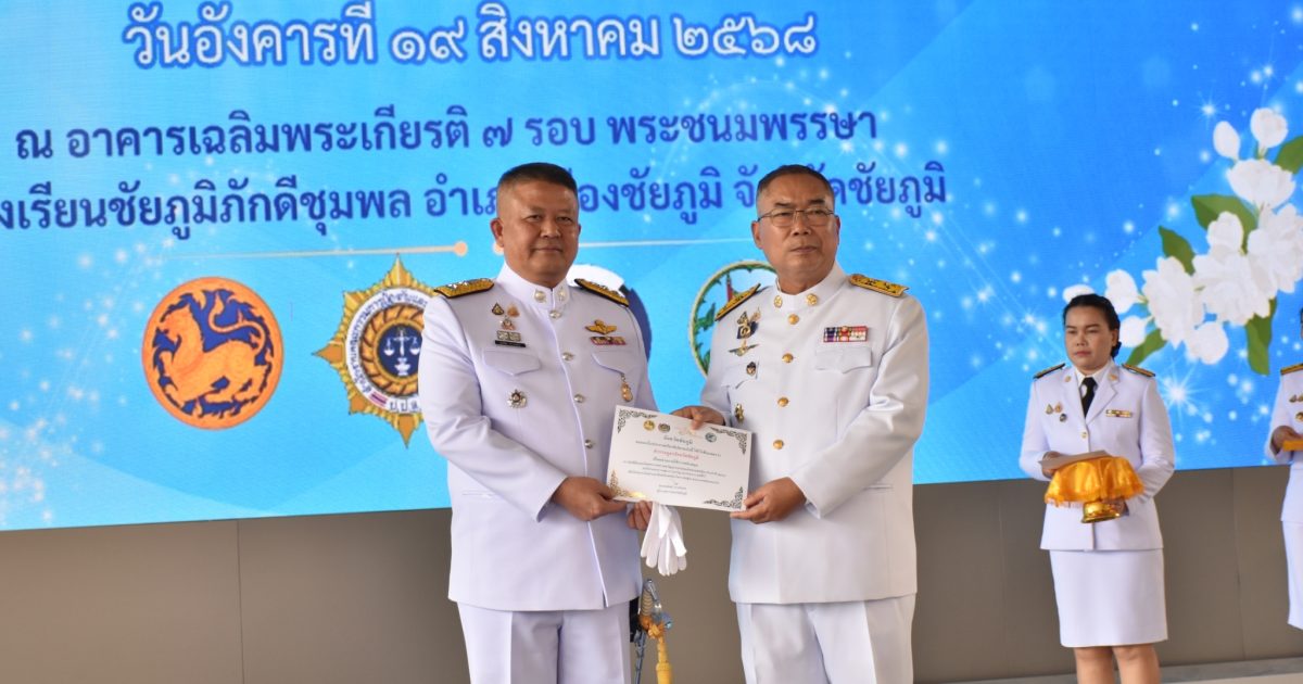 19 ส.ค.68 เวลา 10.00 น. พล.ต.ต.สุจริต ปาณเล็ก ผบก.ก.จว.ชัยภูมิ ร่วมพิธีมอบเงินขวัญถุงกลงทุนแม่ของแผ่นดิน ประจำปี 2568 โดยมี นายอนันต์ นาคนิยม ผู้ว่าราชการจังหวัดชัยภูมิเป็นประธานในพิธี ณ อาคารเฉลิมพระเกียรติ 7 รอบ พระชนมพรรษา โรงเรียนชัยภูมิภักดีชมพล