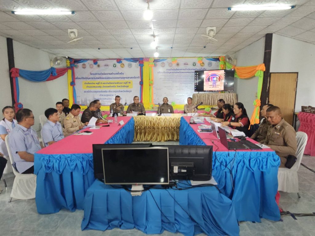 19 ส.ค.2568 เวลา 09.00 น. พ.ต.อ.พิชิต มีแสง รอง ผบก.ภ.จว.ชัยภูมิ ร่วมต้อนรับ พล.ต.ต.ประสงค์ เรืองเดช รอง จตร.รรท.รอง ผบช.ก.3 /ประธานคณะกรรมการ พร้อมกับคณะกรรมการตรวจประเมินผลการดำเนินโครงการดำเนินงานตำบลย้งยืน เพื่อแก้ไขปัญหายาเสพติดแบแบครบวบวจจตามยุทธศาสตร์ชาติ พ.ศ.2568 ของ สภ.แก้งครื้อ ณ ศูนย์เรียมร์ชมชนเฉลิมพระเกียรติ บ้านโคกล่าม