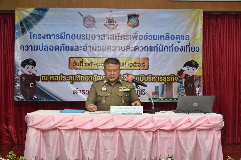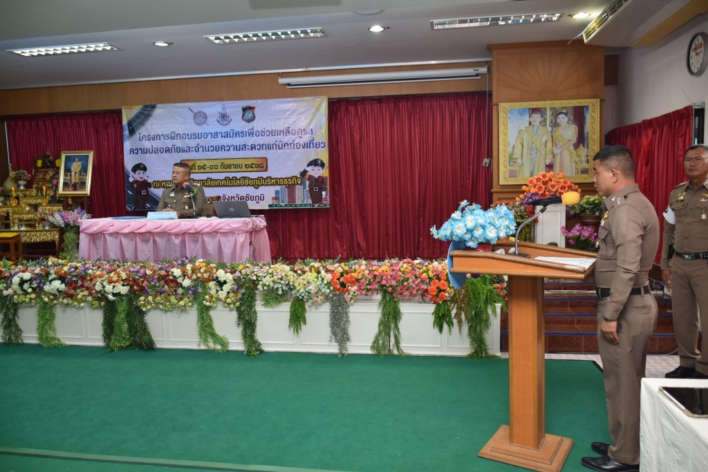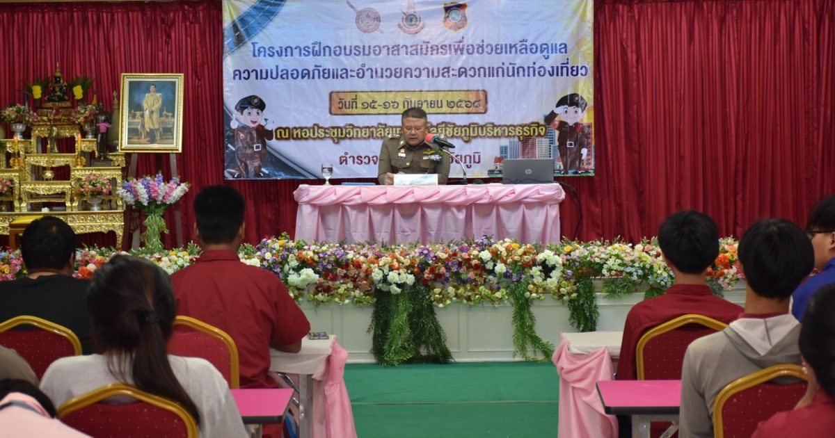 15 ก.ย.68 เวลา 10.00 น. พล.ต.ต.สุจริต ปาณเล็ก ผบก.ภ.จว.ชัยภูมิ เป็นประธานพิธีเปิดโครงการฝึกอบรมอาสาสมัครเพื่อช่วยเหลือดูแลความปลอลลดภัยและอำนวยความสะดวกแก่นักท่องเที่ยว ณ ณ พอประชุมวิทยาลัยเทคโนโลยีชัยภูมิบริหารธุรกิจ ต.ในเมือง อ.เมือง จ.ชัยภูมิ พร้อมด้วย พ.ต.อ.อานุภาพ ผิวอ่อน รอง ผบก.ภ.จว.ชัยภูมิ,ว่าที่ พ.ต.อ.ปิยะพงษ์ เอนสาร ผกก.1 บก.ทองเที่ยว 2 พร้อมคณะ ร่วมเป็นเกียรติในพิธีเปิดฯ โดยมีอาสาสมัครเข้าร่วมอบรมทั้งสิ้น จำนวน 100 นาย