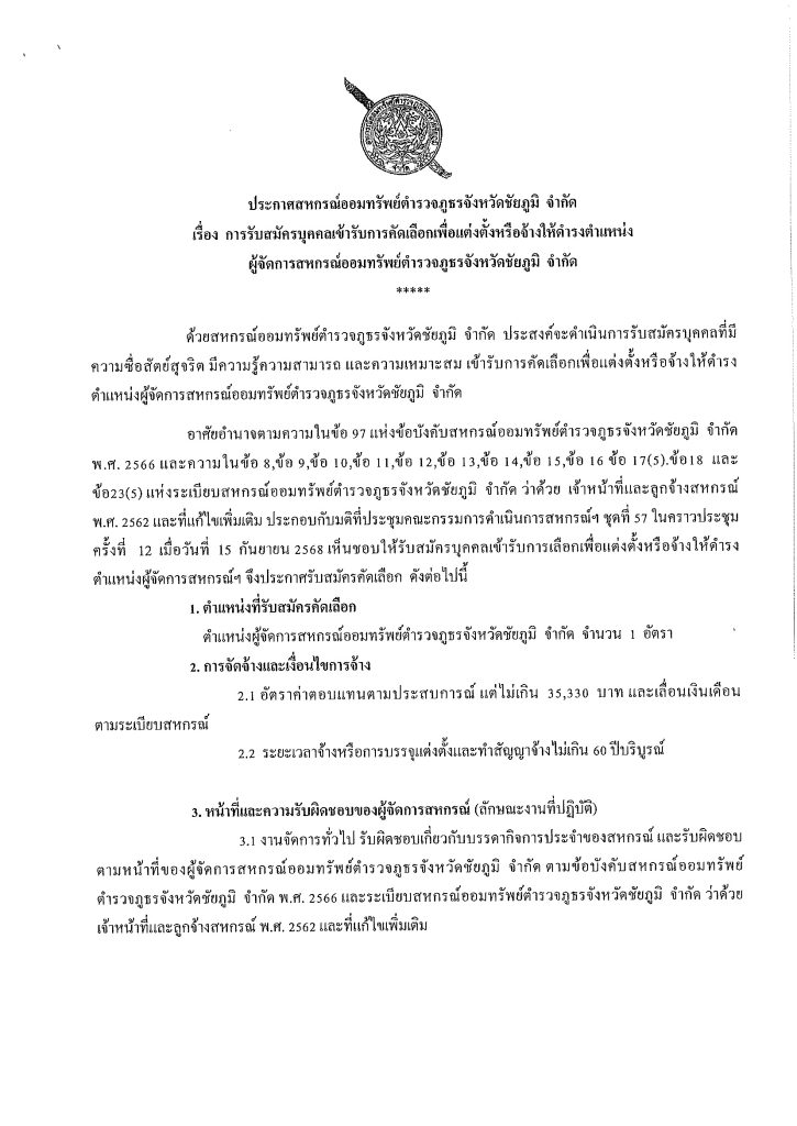 ประกาศการรับสมัครผู้จัดการสหกรณ์ฯ 2568-09-18 โดย พนมสรรค์ / ข่าวประกาศ ประกาศการรับสมัครผู้จัดการสหกรณ์ฯดาวน์โหลด