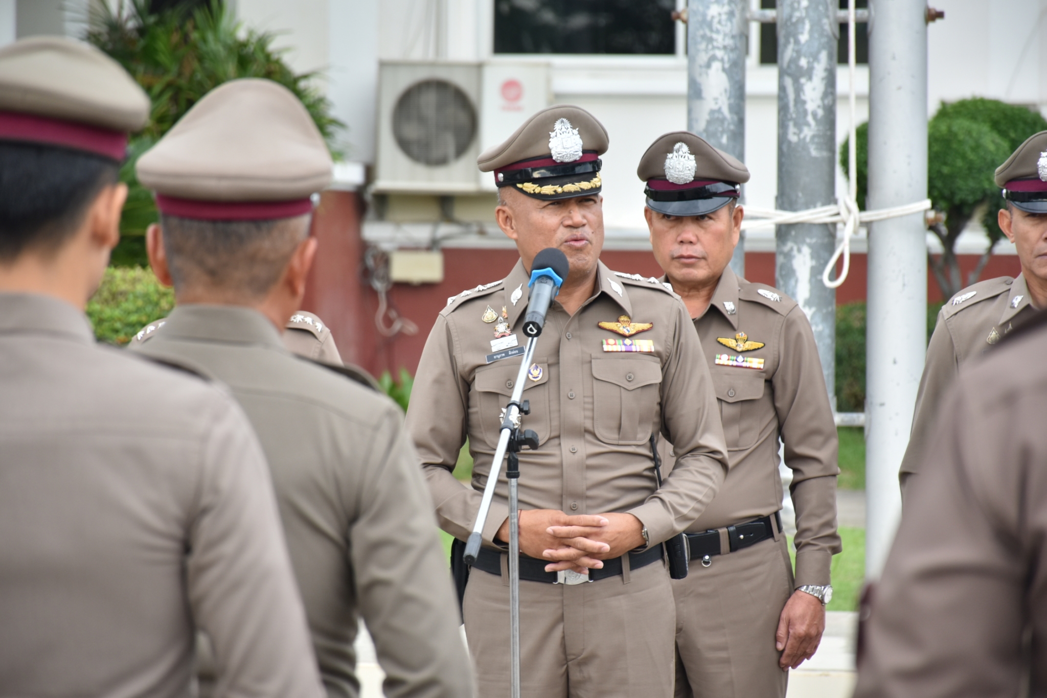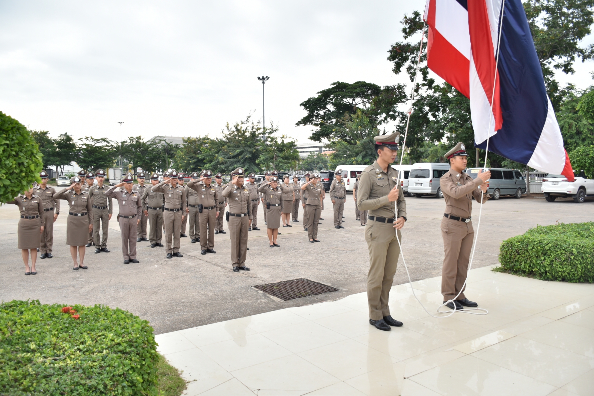 พ.ต.อ.อานุภาพ ผิวอ่อน รอง ผบก.ภ.จว.ชัยภูมิ เข้าแถวเคารพธงชาติ