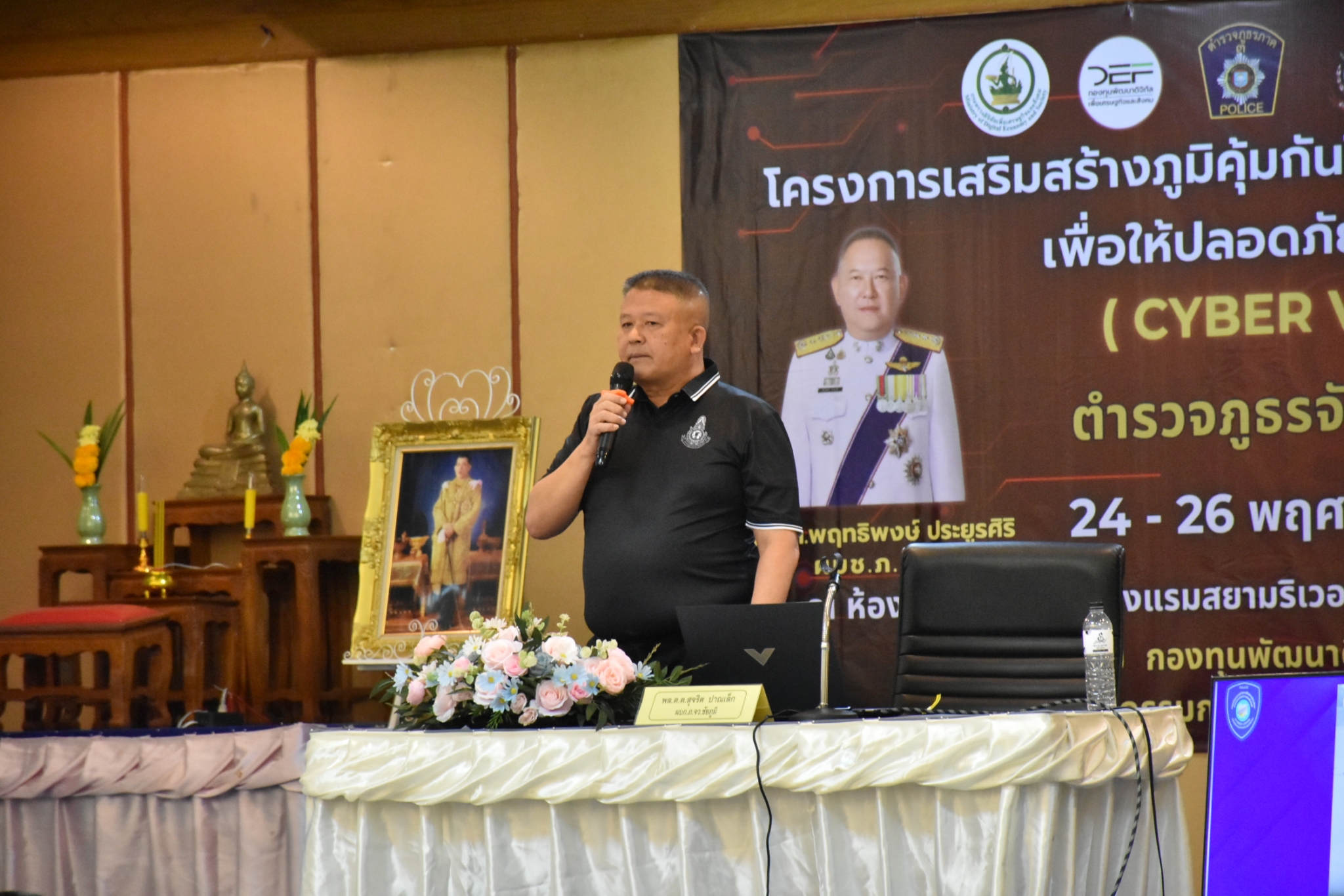 25 พ.ย.68 เวลา 15.00 น. พล.ต.ต.สุจริต ปาณเล็ก ผบก.ภ.จว.ชัยภูมิ ได้พบปะให้ความรู้ผู้เข้าร่วมการอบรมวิทยากรต้นแบบ โครงการเสริมสร้างภูมิคุ้มกันแก่เยาวชนในจังหวัดชัยภูมิ เพื่อให้ปลอดภัยในสังคมดิจิทัล (Cyber Vaccine) ตำรวจภูธรจังหวัดชัยภูมิ ณ ห้องประชุมลีลาวดี โรงแรมสยามริเวอร์ รีสอร์ท อ.เมืองชัยภูมิ จว.ชัยภูมิ