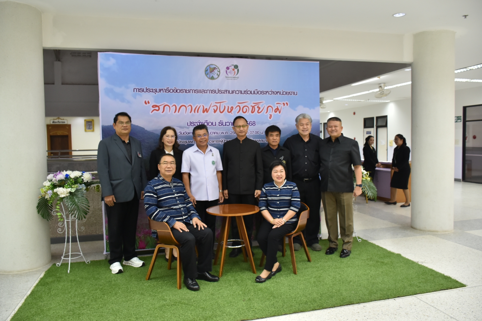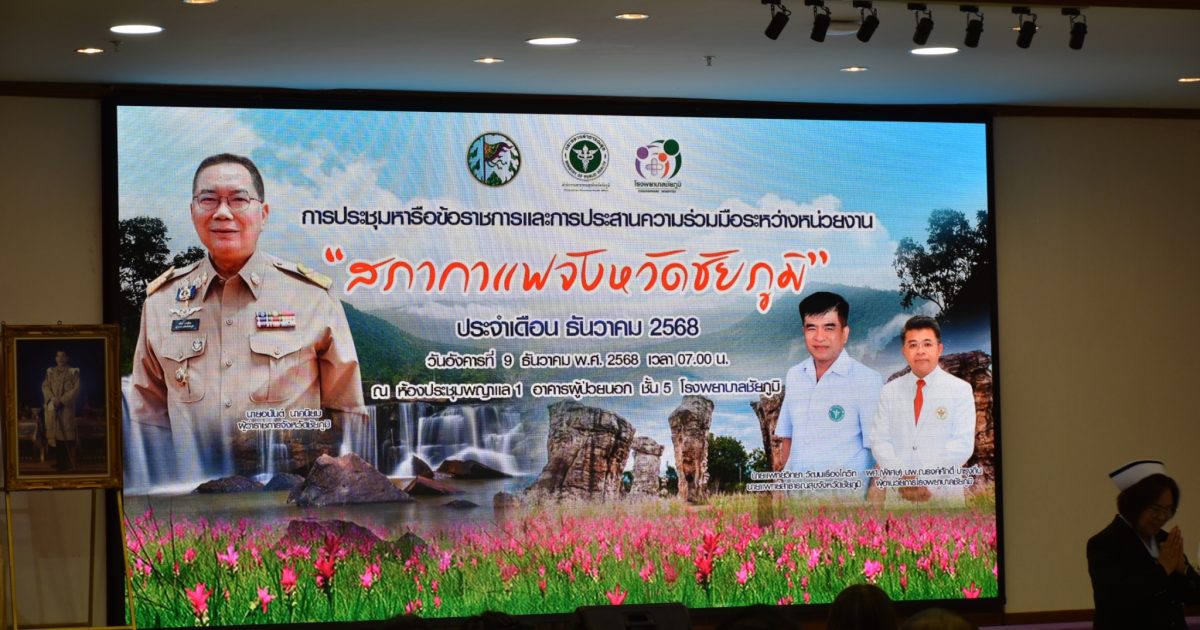 9 ธ.ค.68 เวลา 07.00 น. พล.ต.ต.สุจริต ปาณเล็ก ผบก.ภ.จว.ชัยภูมิ พร้อมด้วย พ.ต.อ.อานุภาพ ผิวอ่อน รอง ผบก.ก.จว.ชัยภูมิ ร่วมประชุมหารือข้อราชการและการประสานความร่วมมือระหว่างหน่วยงาน ประจำเดือนธันวาคม 2568ณ ห้องประชุมพญาแล 1 อาคารผู้ป่วยนอก ชั้น 5 โรงพยาบาลชัยภูมิ ต.ในเมือง อ.เมืองชัยภูมิ จว.ชัยภูมิ โดยมี นายอนันต์ นาคนิยม ผู้ว่าราชการจังหวัดชัยภูมิ เป็นประธานการประชุม